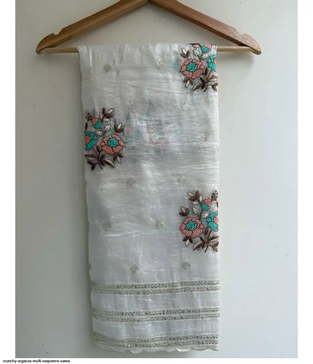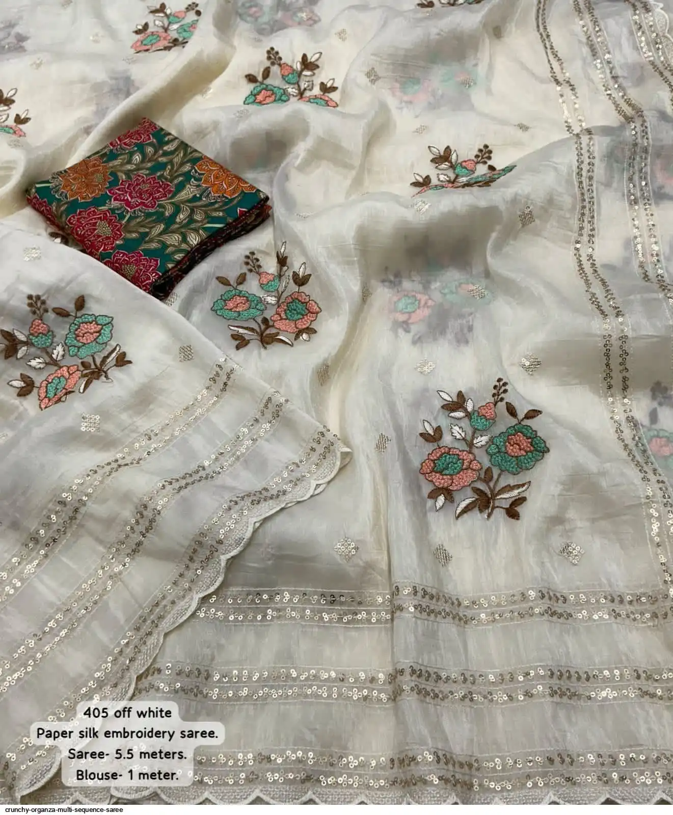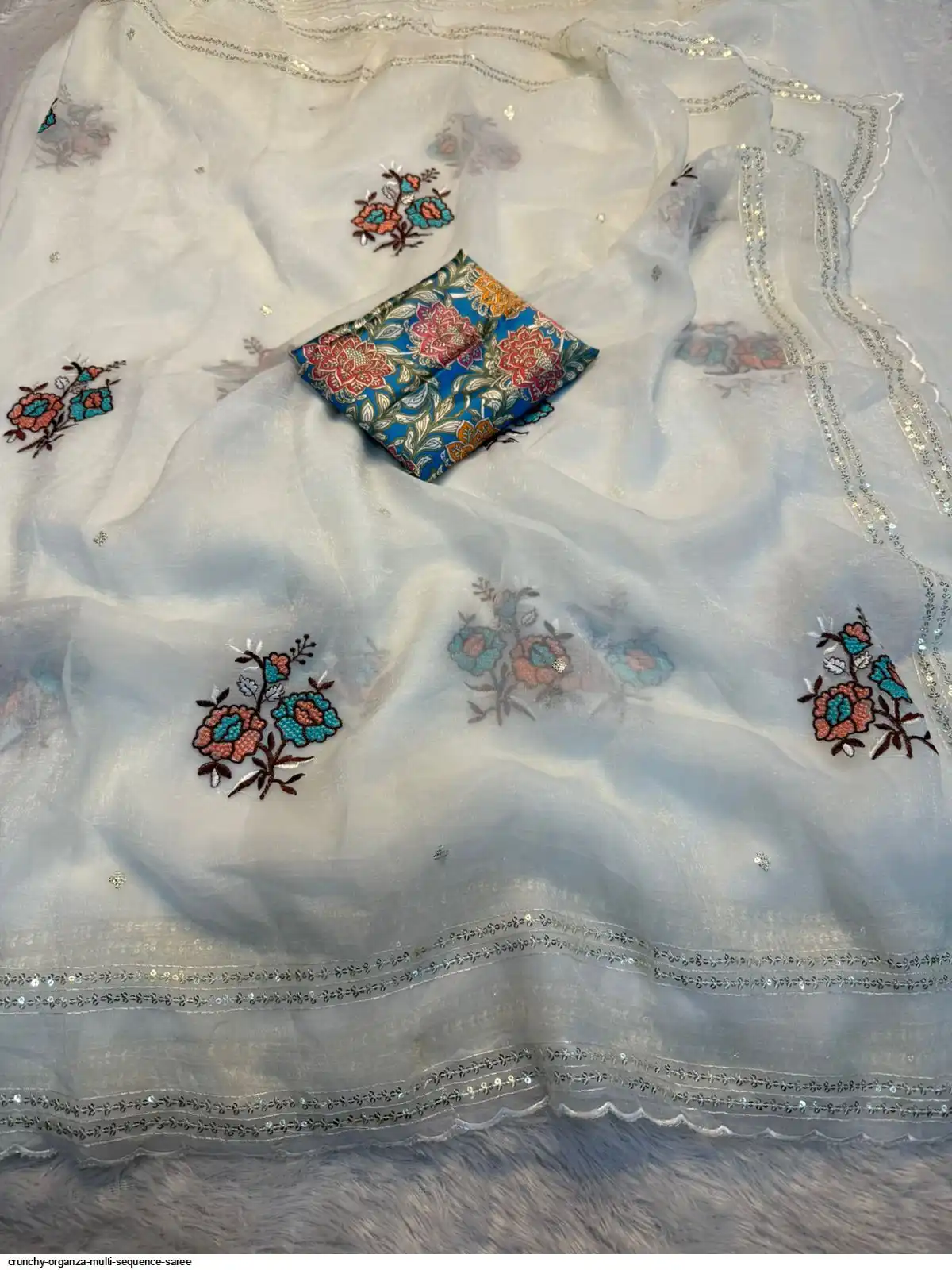 Soft crunchy organza Multi Sequence Emrodairy Full Worked Saree With digital Blouse