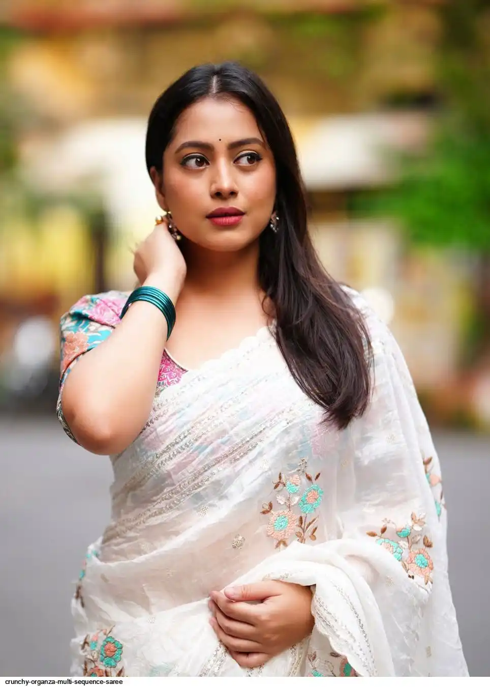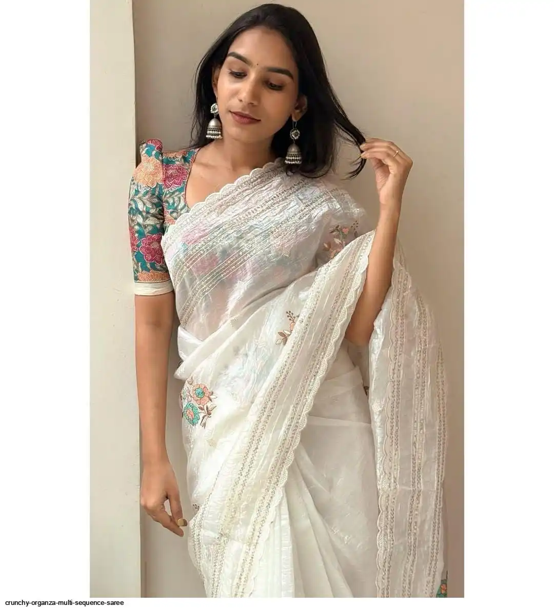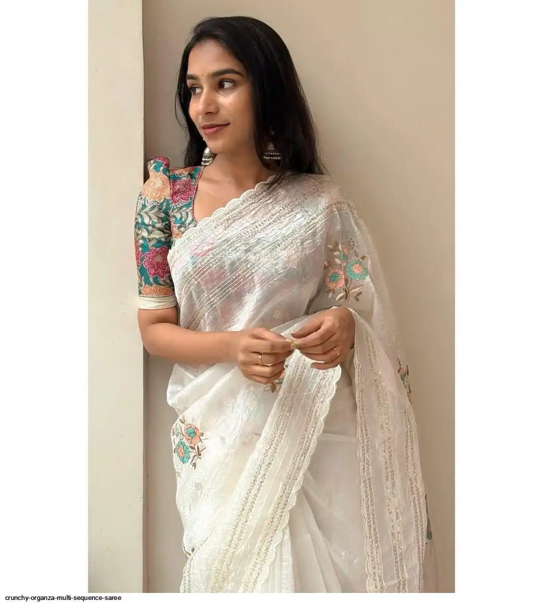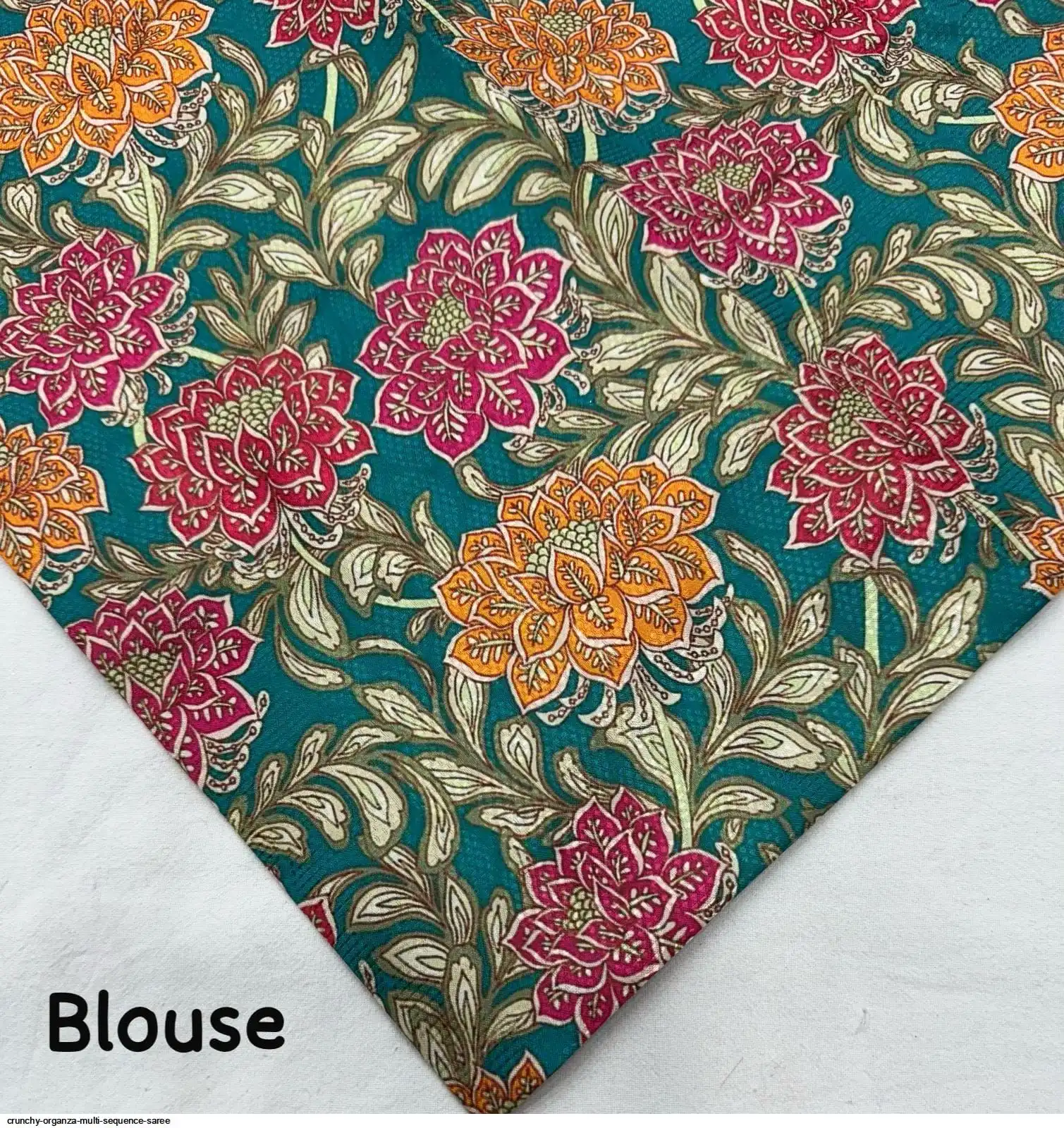 Soft crunchy organza Multi Sequence Emrodairy Full Worked Saree With digital Blouse