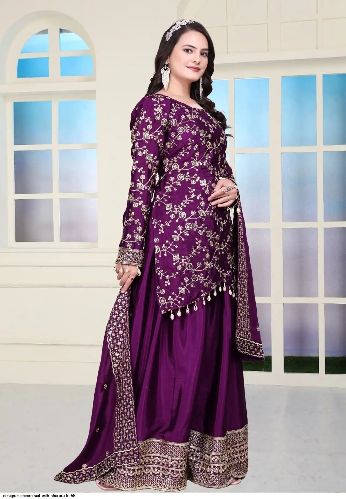 Fabric : Chinon With Heavy Embroidery Work