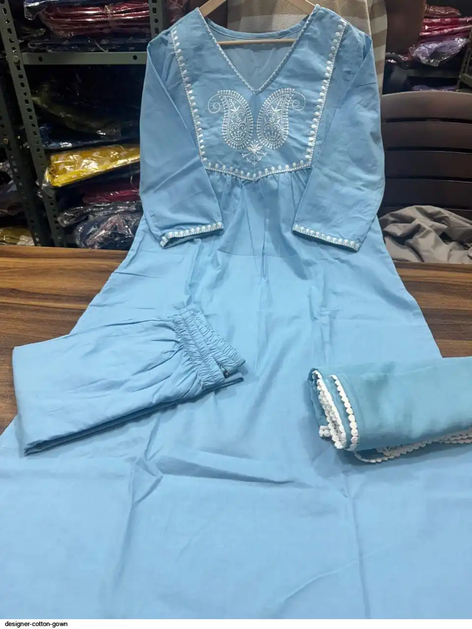 Premium fine cotton work on yoke and , paired with fine cotton mal dupatta with pant plazo*....
