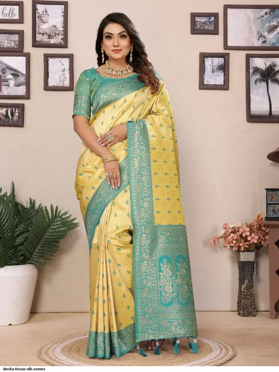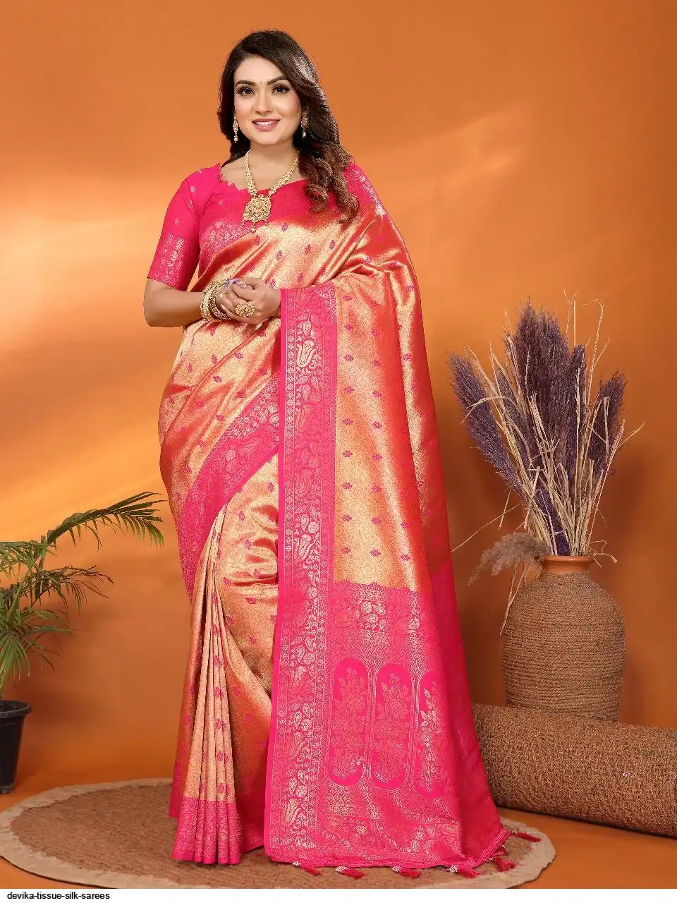 Handloom Tissue Silk Sarees with all over Zari Weaving Designs and Contrast Zari woven borders and Contrast Zari woven Rich Pallu