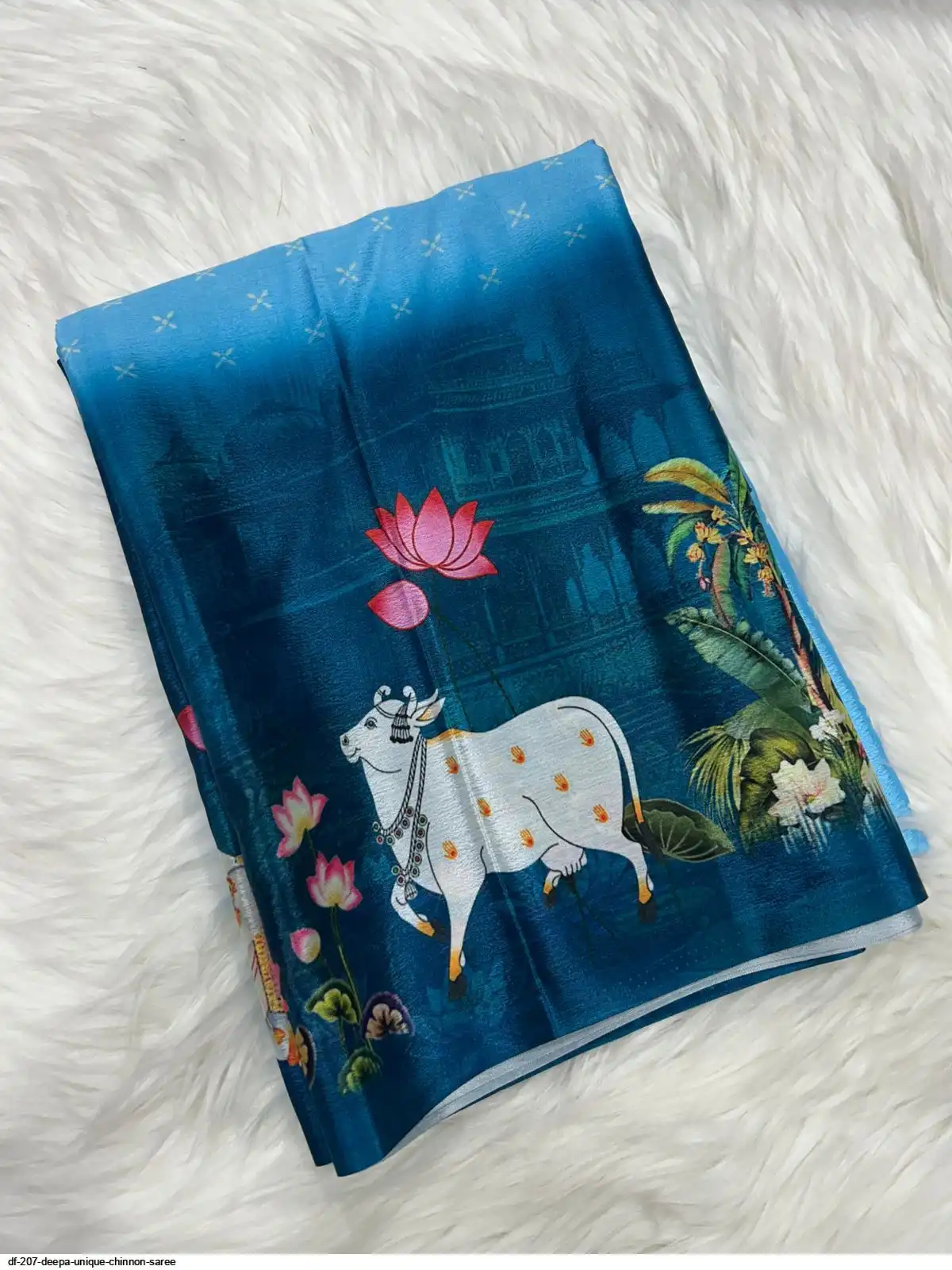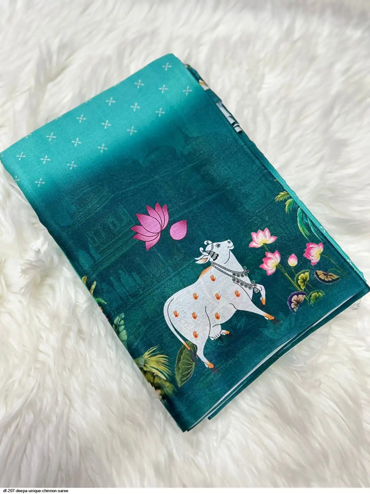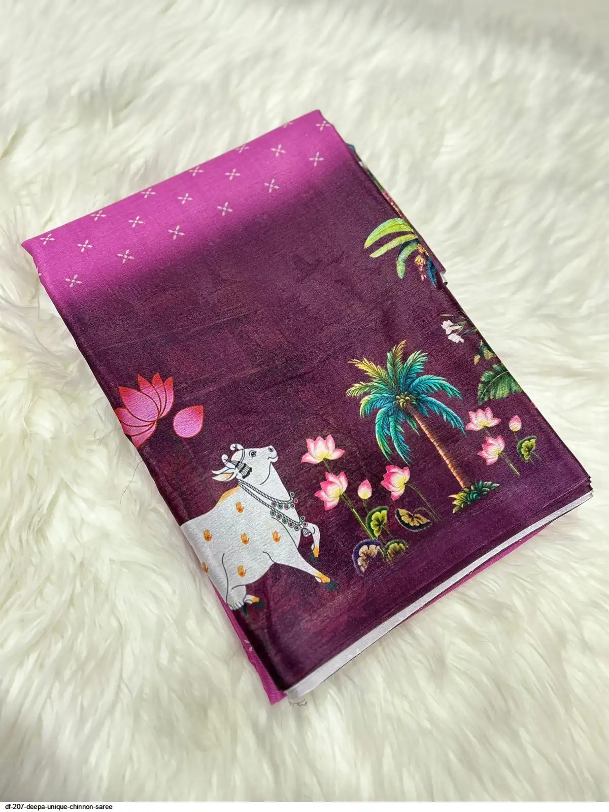 Fabric:- Chinnon saree with Kalamkari Print and Running Design Blouse