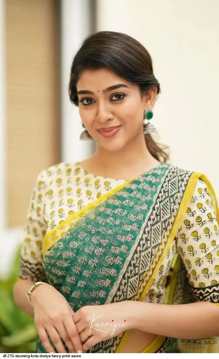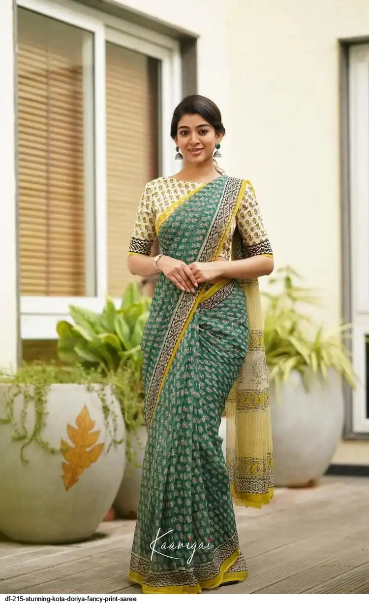Fabric:- Kota Doriya With Digital Print Work And Running Designing Blouse