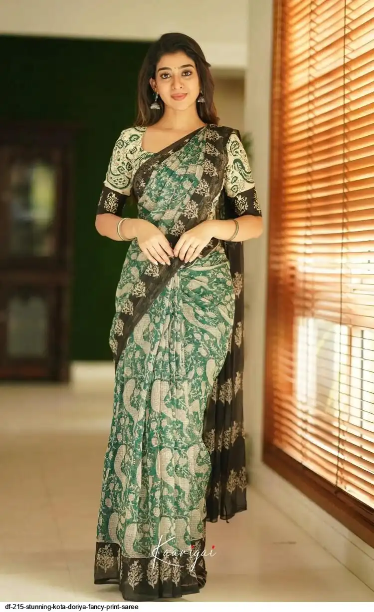 DF 215 STUNNING KOTA DORIYA FANCY PRINT SAREE F