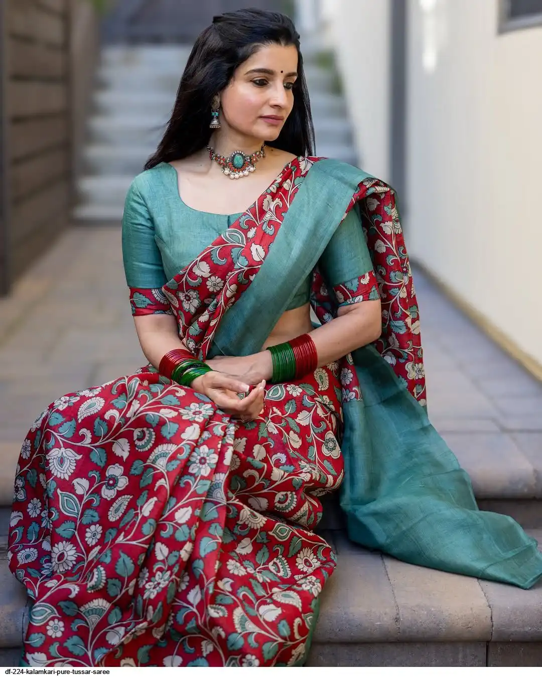 Fabric:- Soft Tussar With Kalamkari Digital Print & Running Blouse