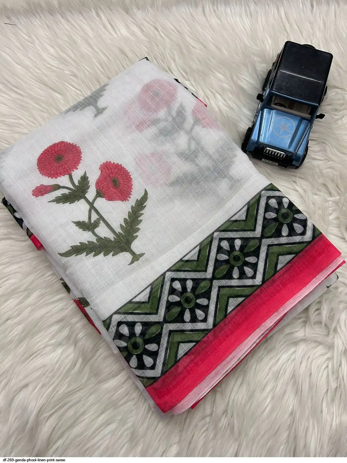 Fabric:- Soft Linen Print Saree With Blouse and Latkan