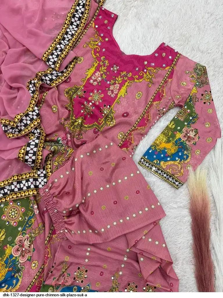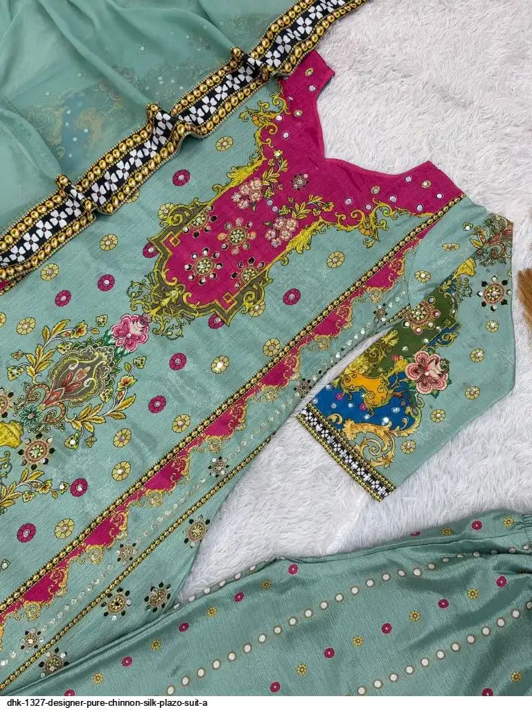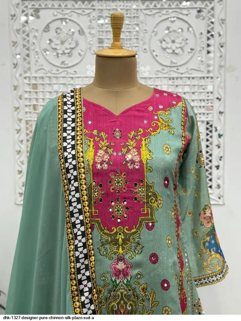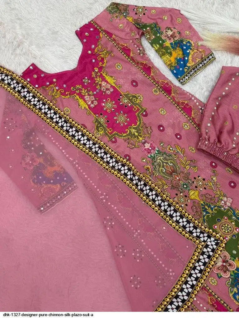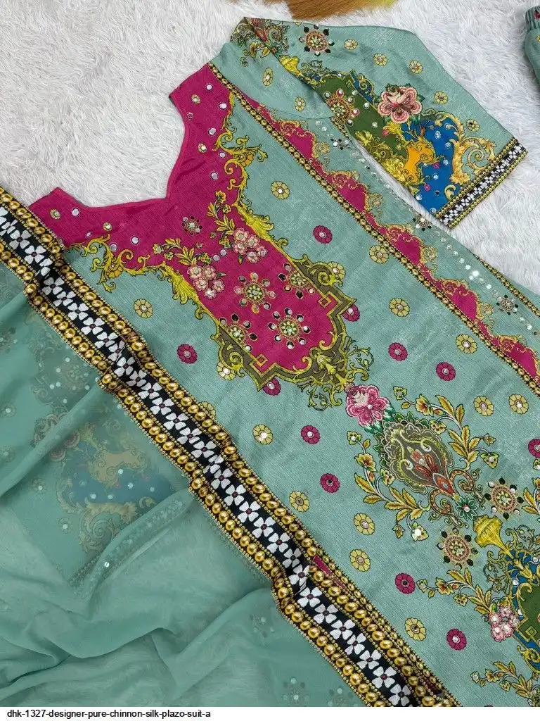 WORK :- Attractive digital print with real mirror hand work.