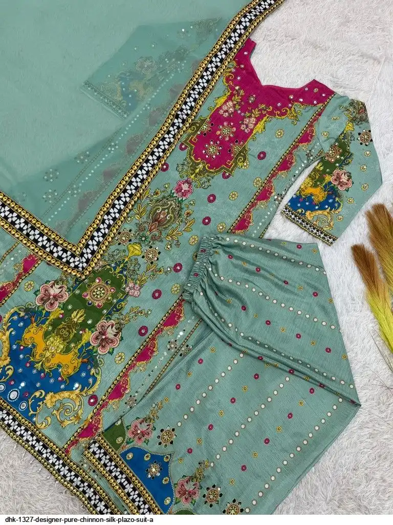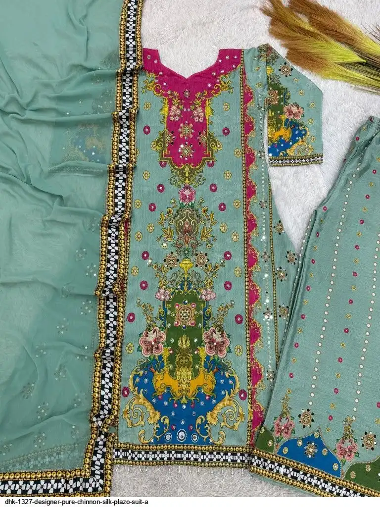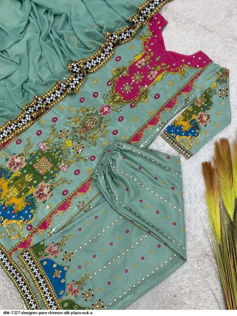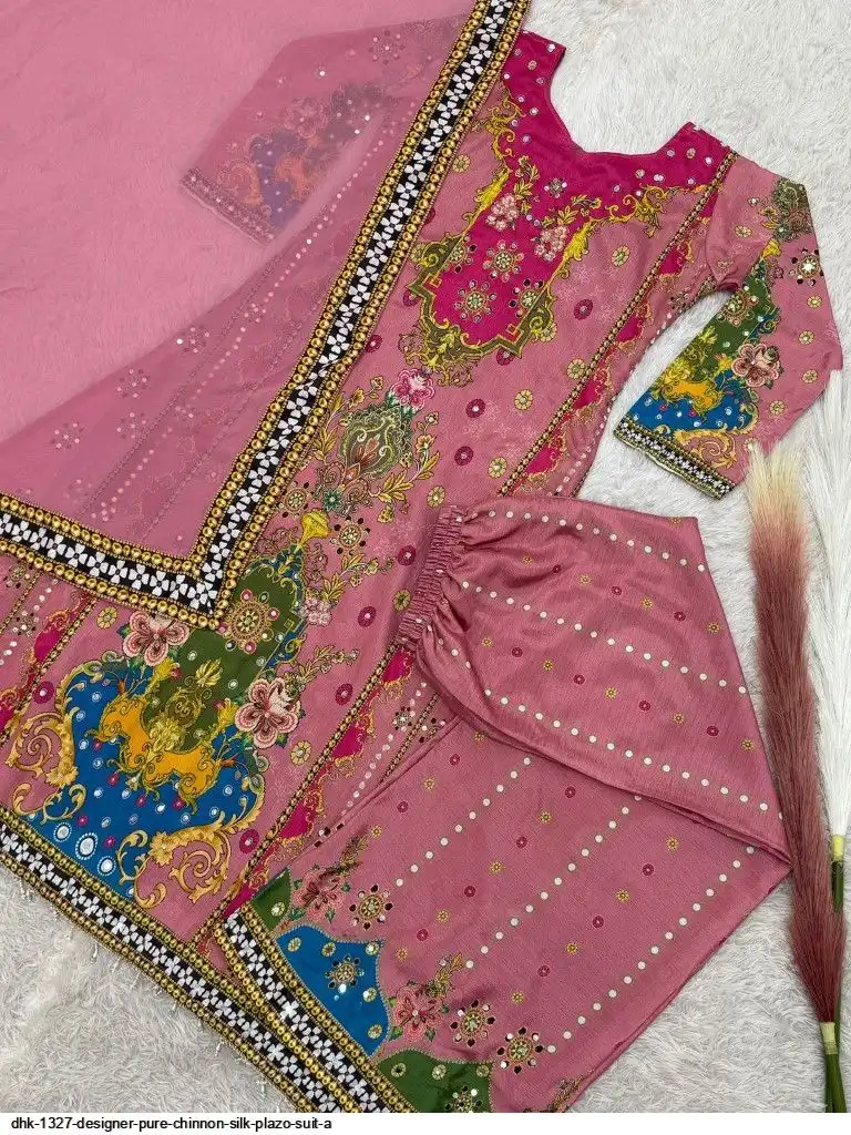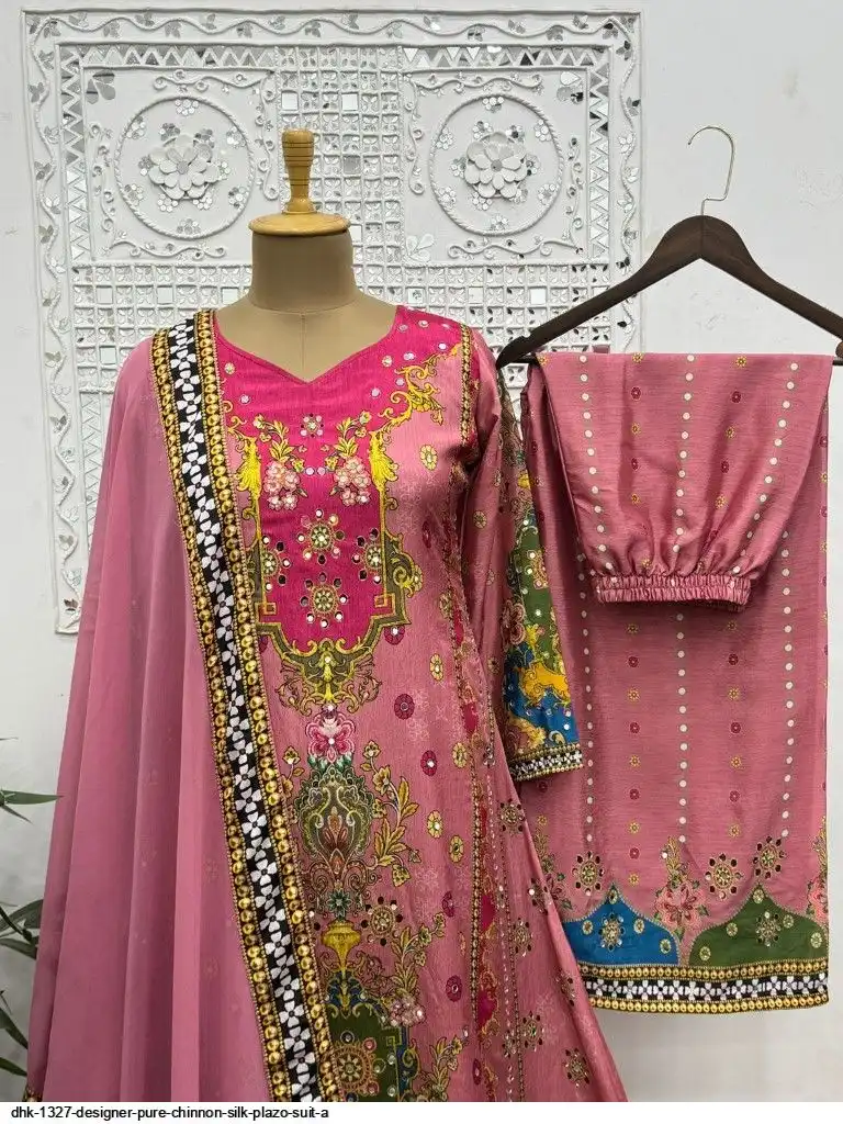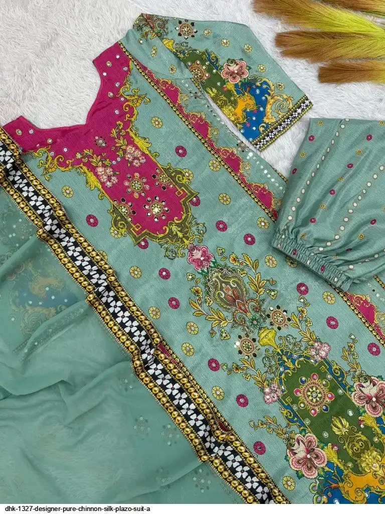 WORK :- Attractive digital print with real mirror hand work.