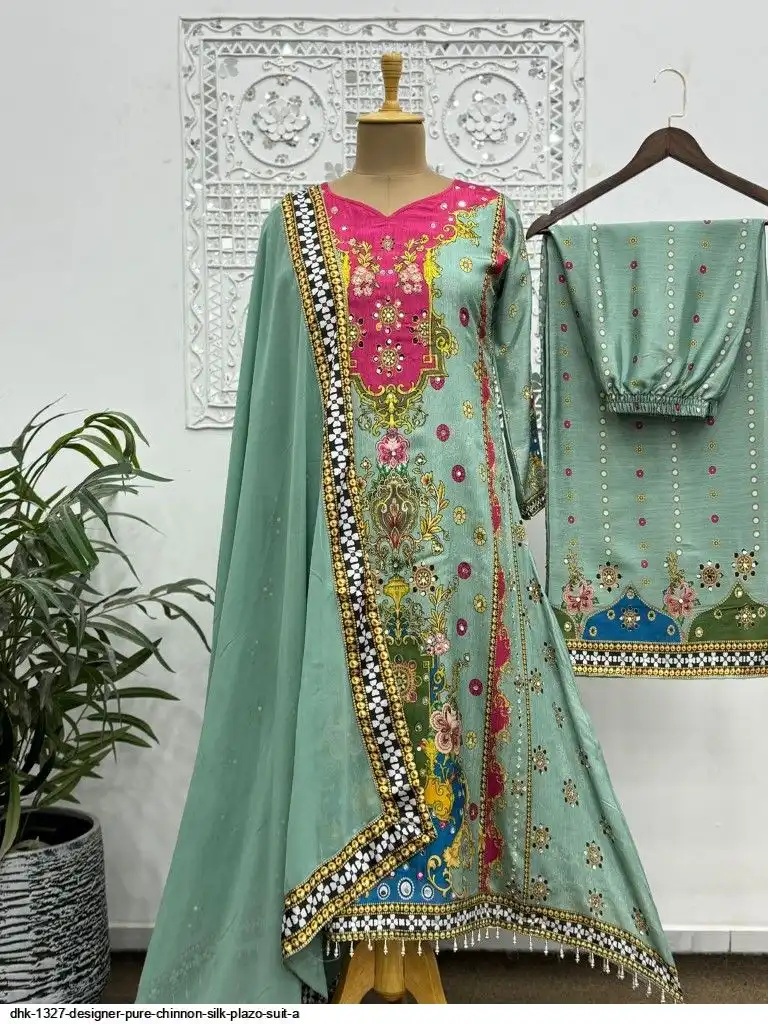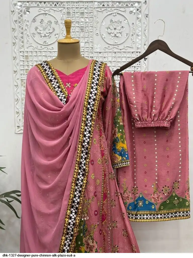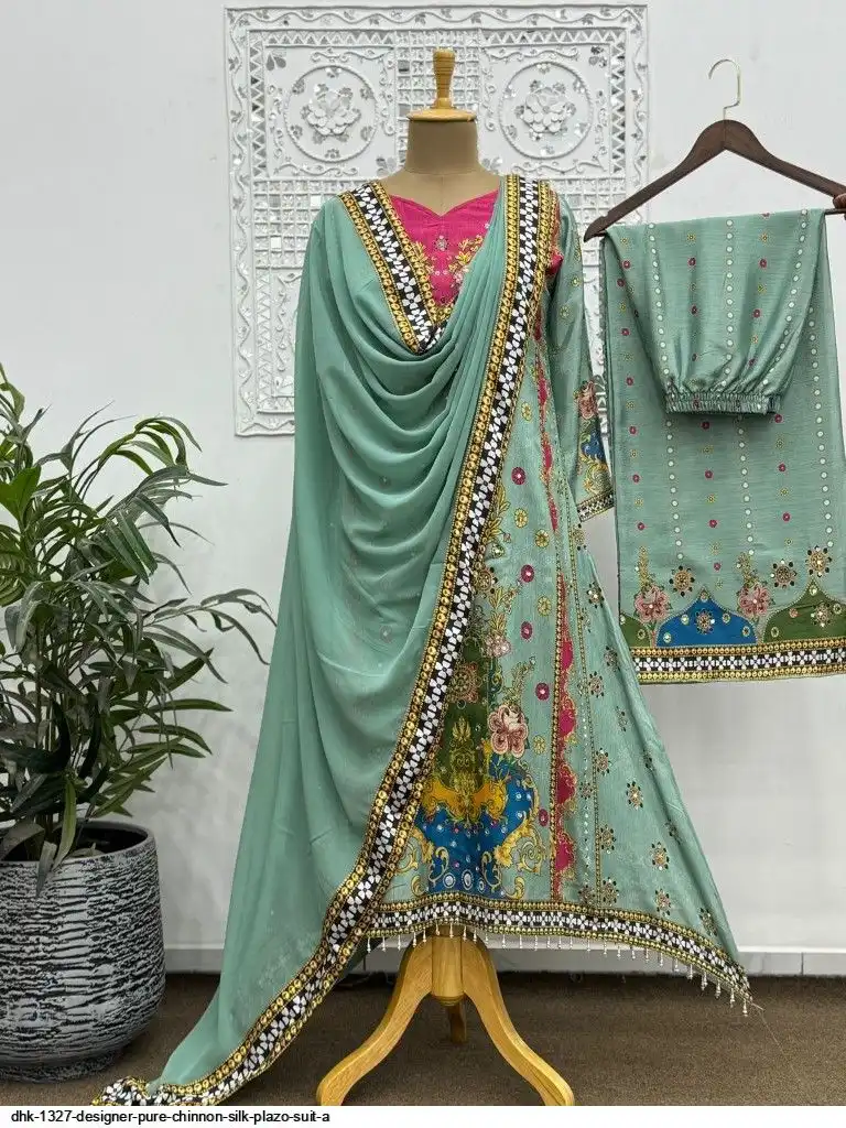 WORK :- beautiful digital print with real mirror hand work.And Hangings Lace Border