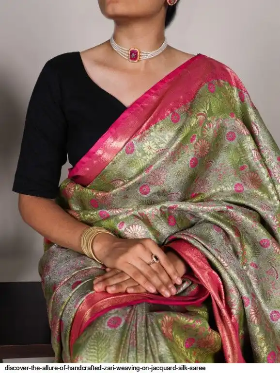 Discover the Allure of Handcrafted Zari Weaving on Jacquard Silk Sarees – A Celebration of Artistry and Luxurious Fabric🪸