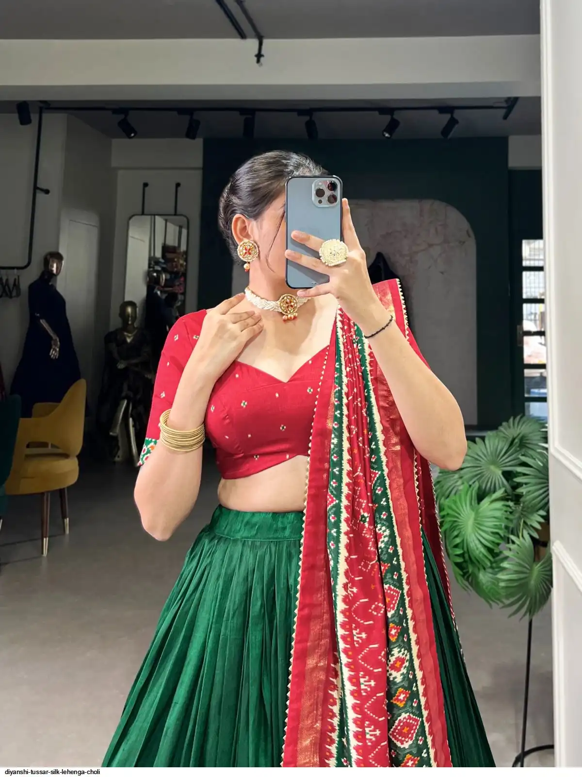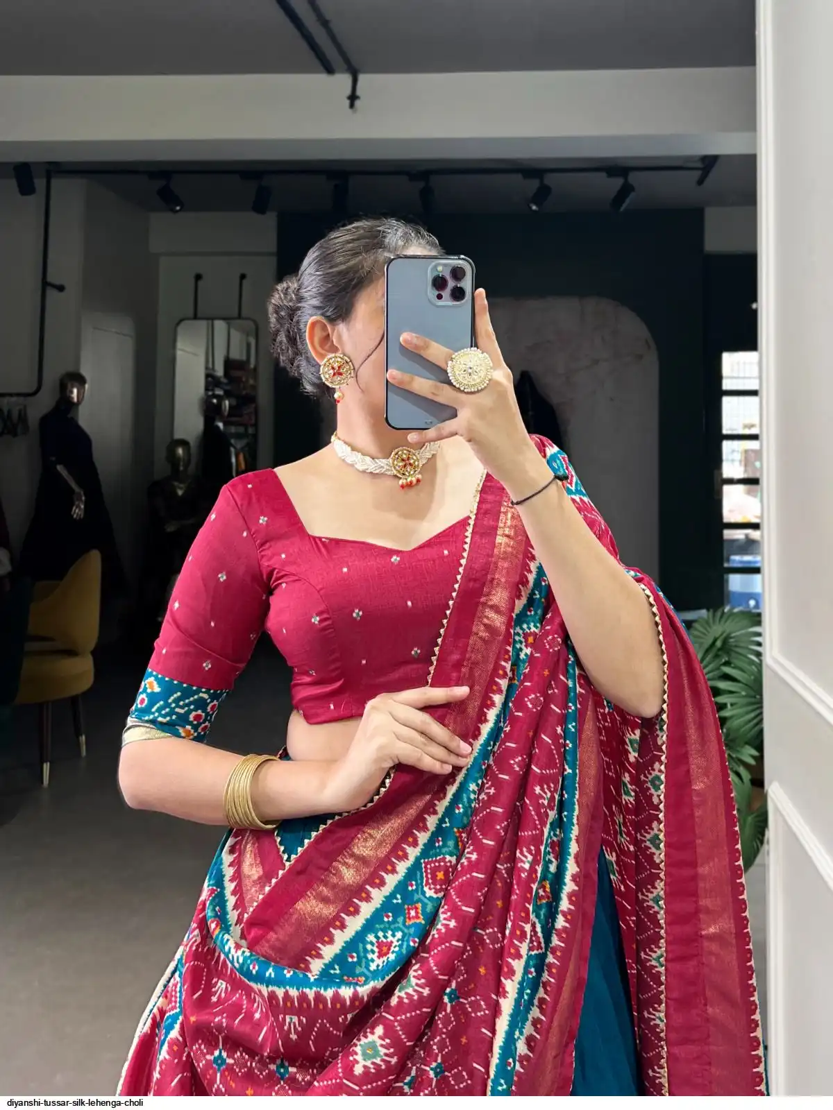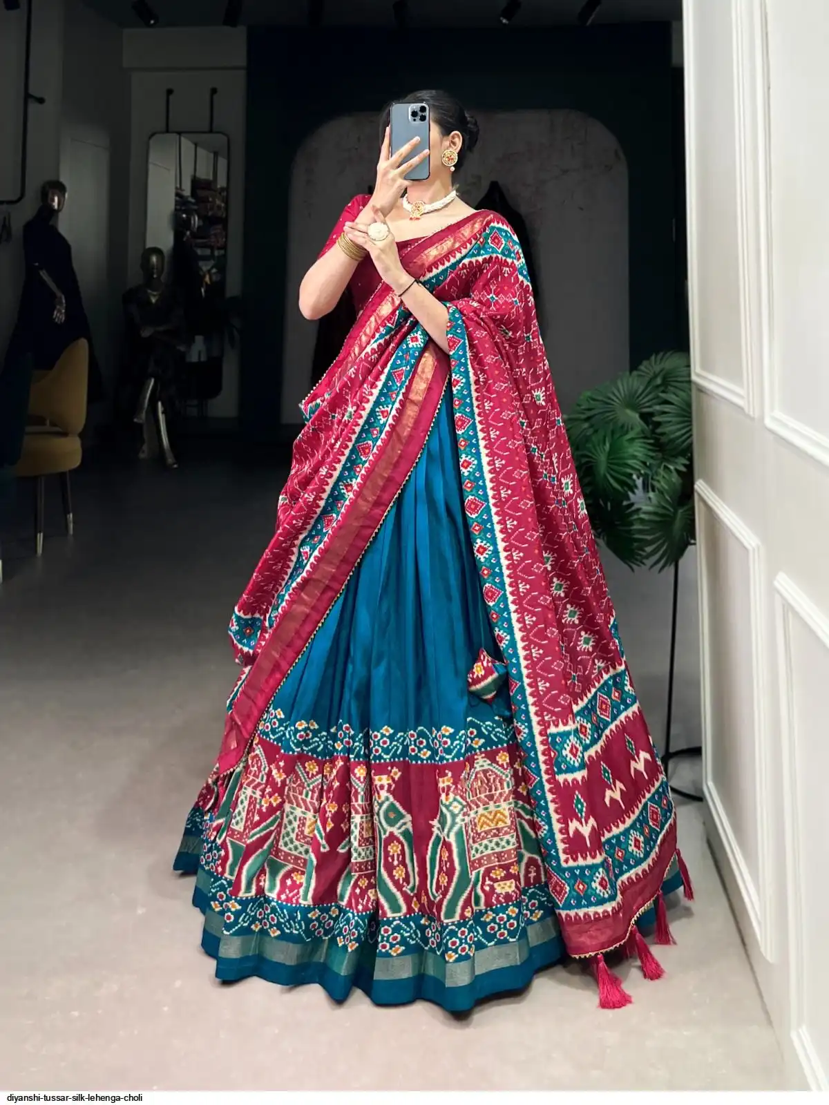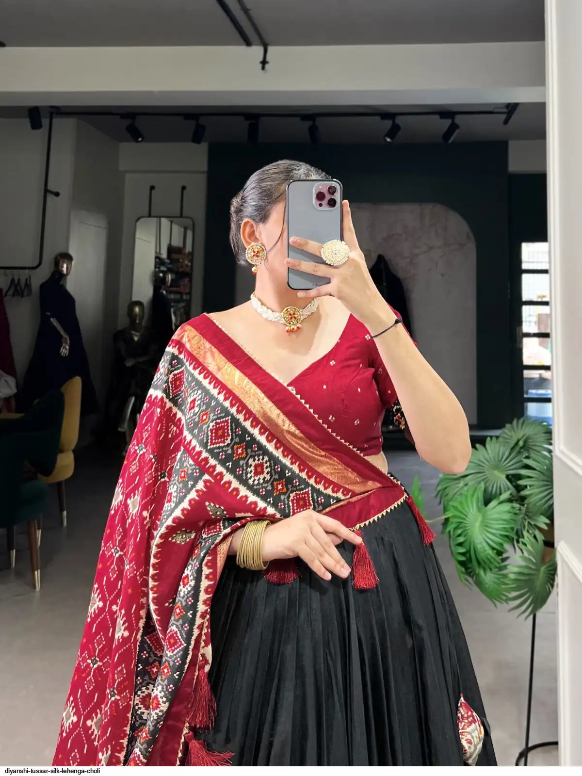 Dupatta work : Patola Print With Gotta Patti Lace Border also comes with tassels