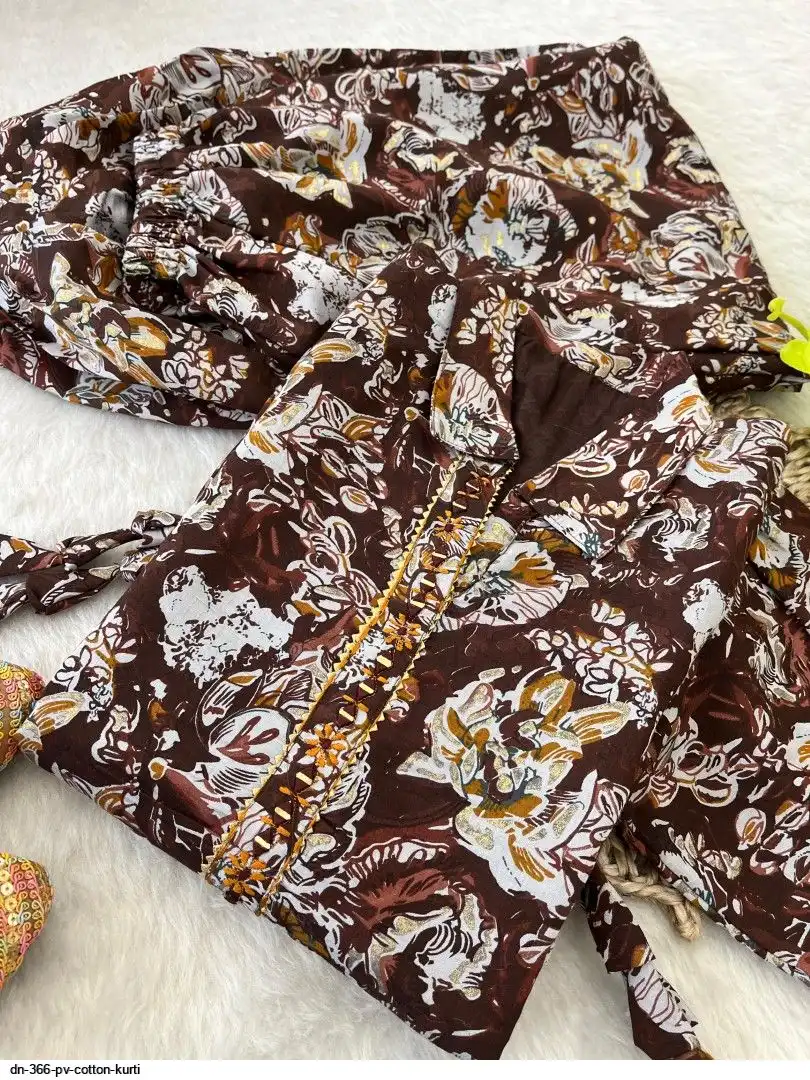 KURTA FABRIC PV COTTON CHAHNDER WITH MILLE PRINTED ADDITIONAL FOIL TECHEP AND WORK , SLEEVE LESS ( EXTRA SLEEVE FABRIC INSIDE ATTCH )