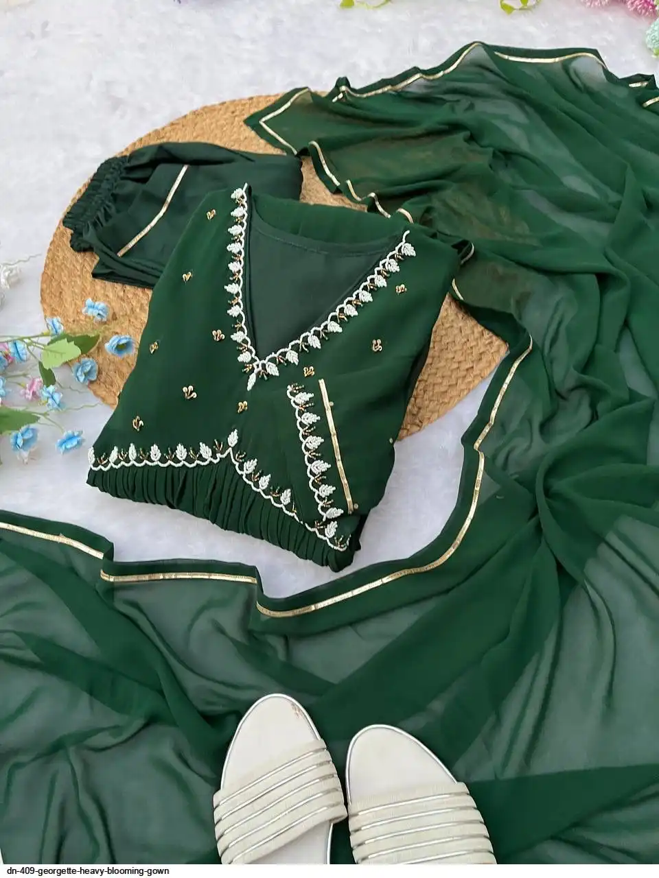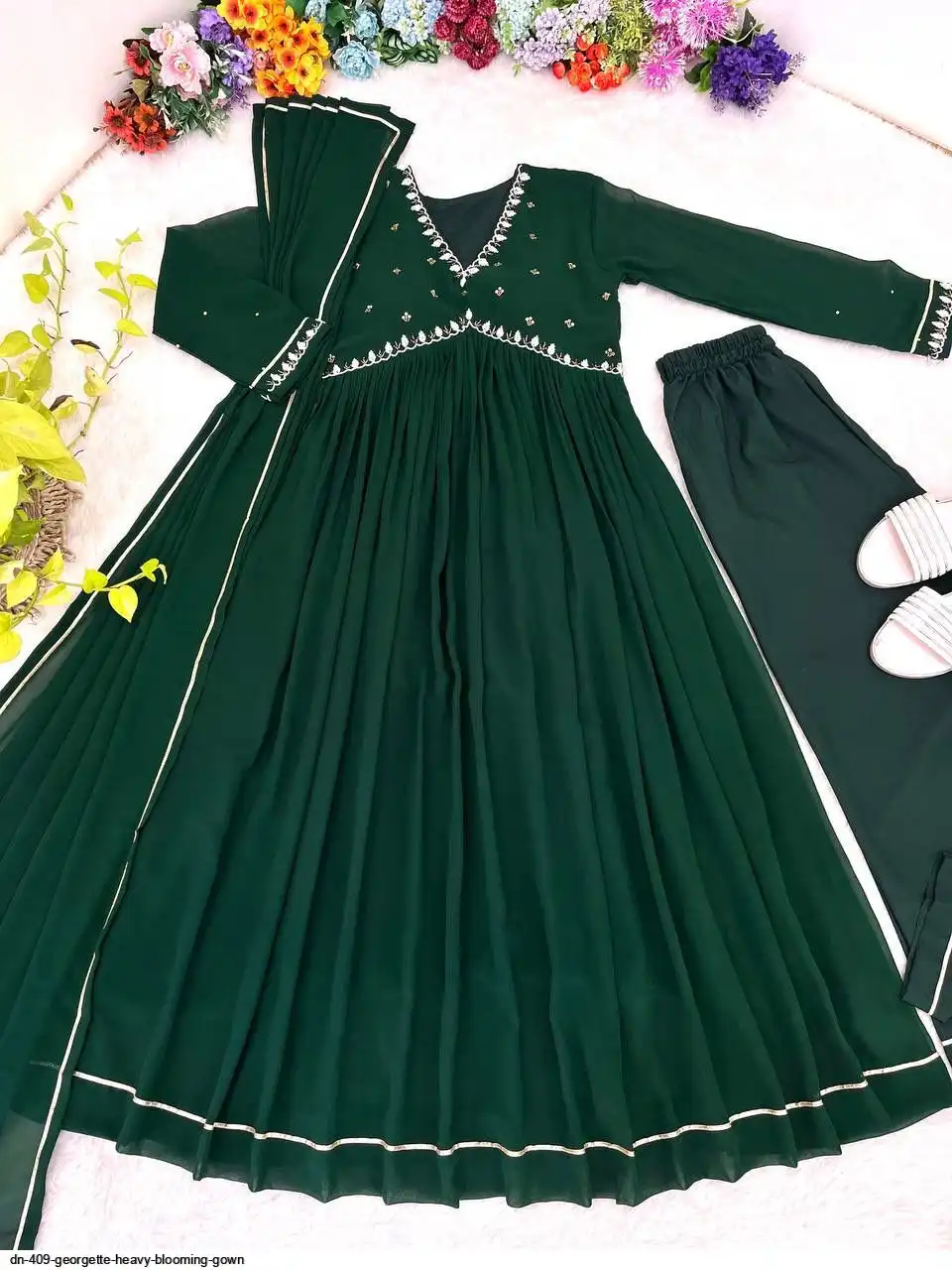 Presenting By New Party Wear Look Fox Gerorrget Gown With Dupatta , pant