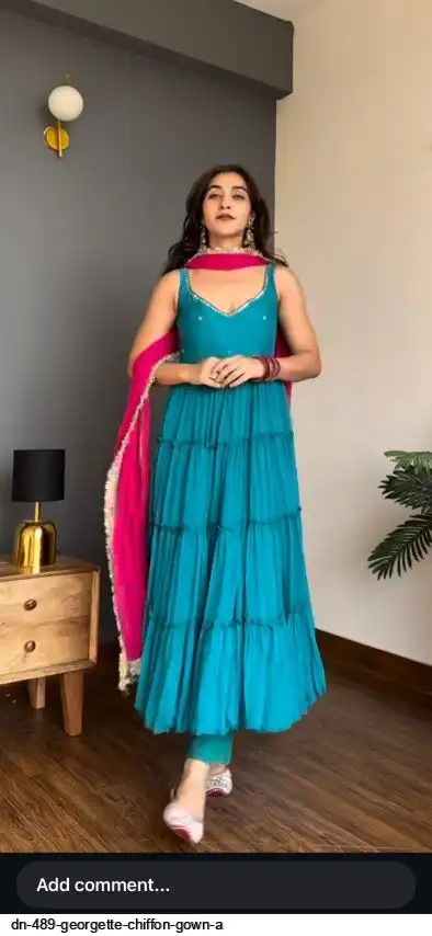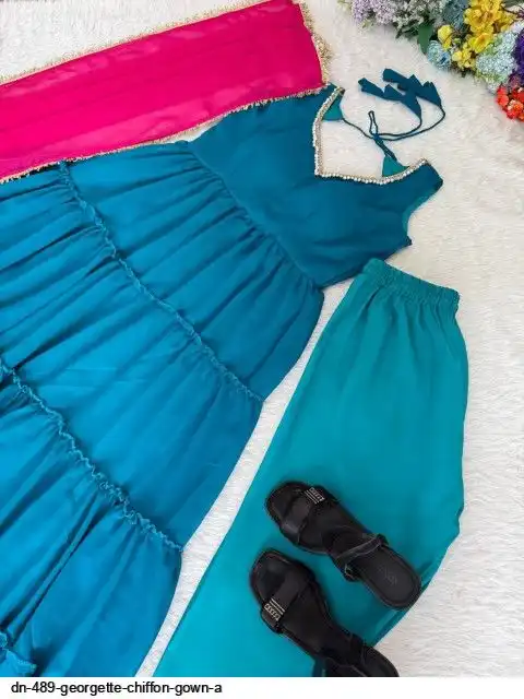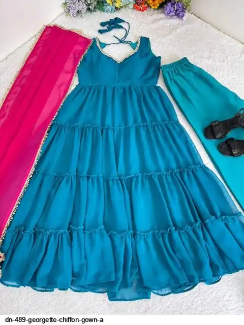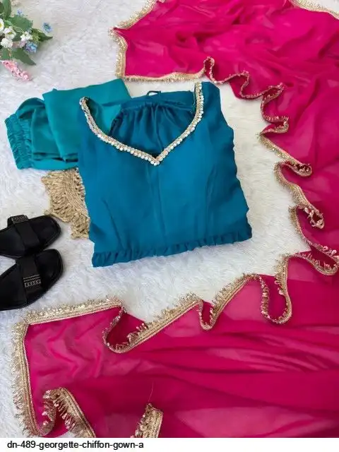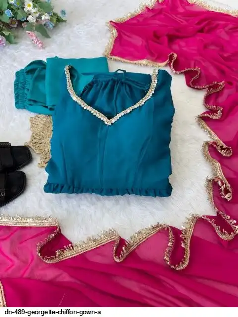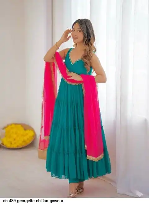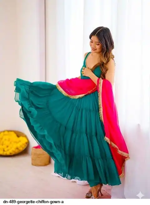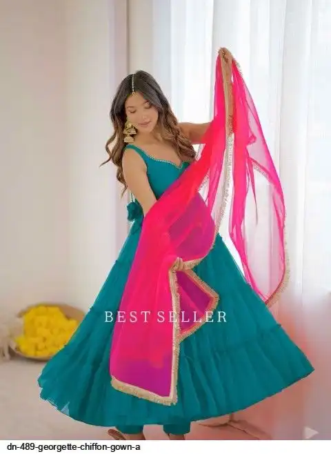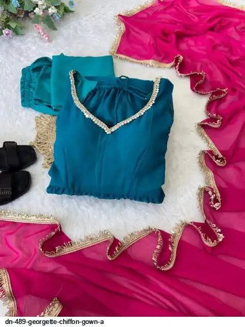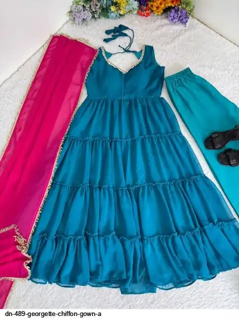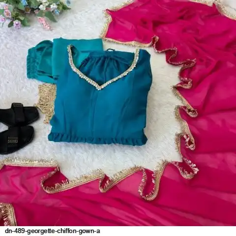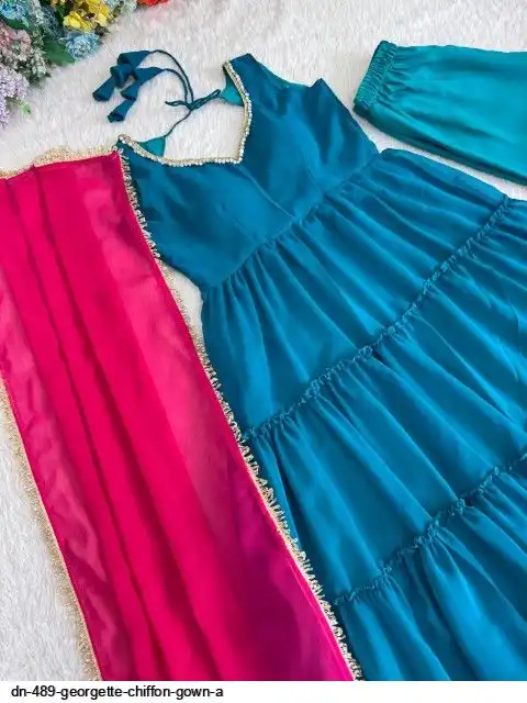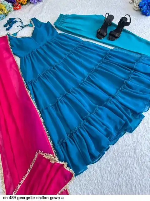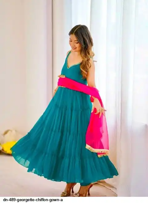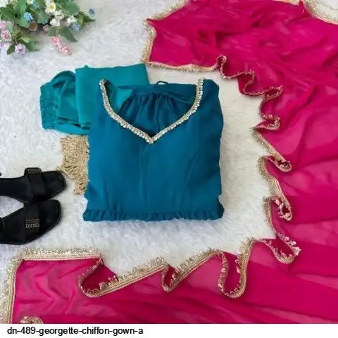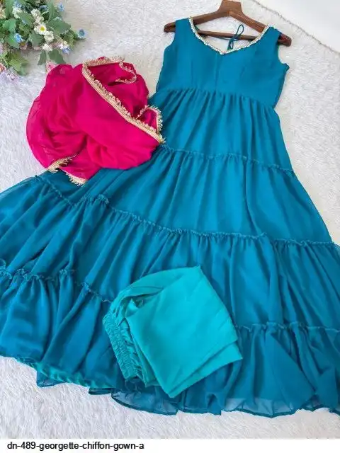 Presenting By New Festival, Season ,Party Wear Look Pure Gerorrget Chiffon Gown , Pany With Dupatta