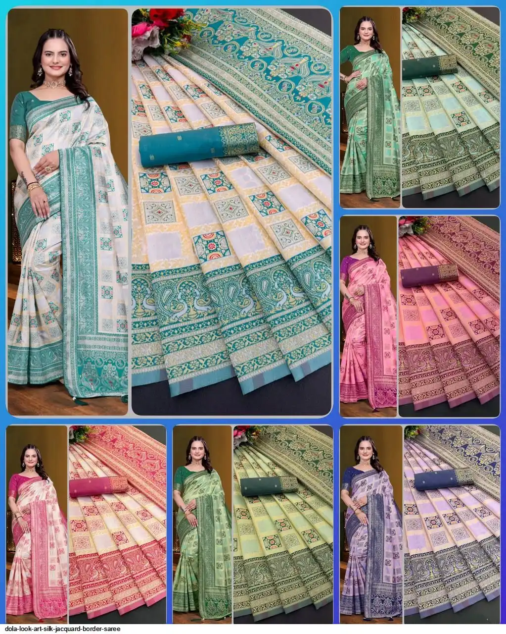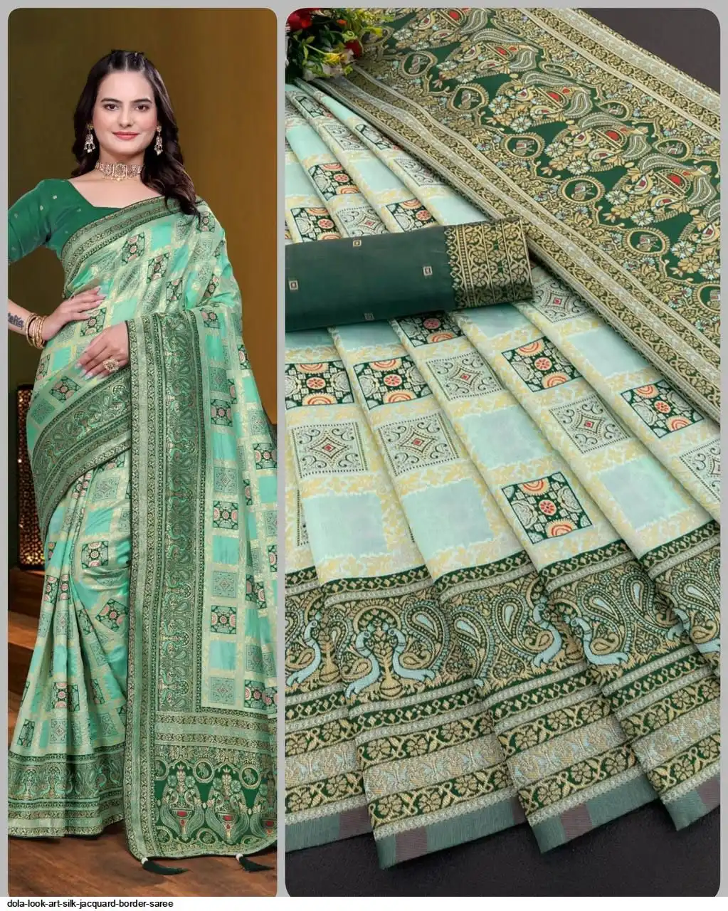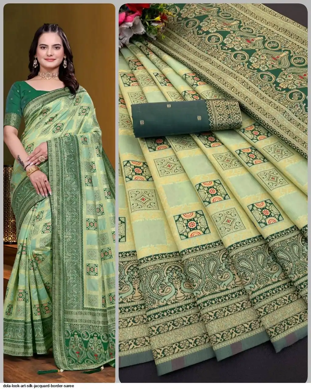*Beautiful Art Silk Jacquard Border Saree With Unstitched Running Blouse For Women Wedding Wear Party*