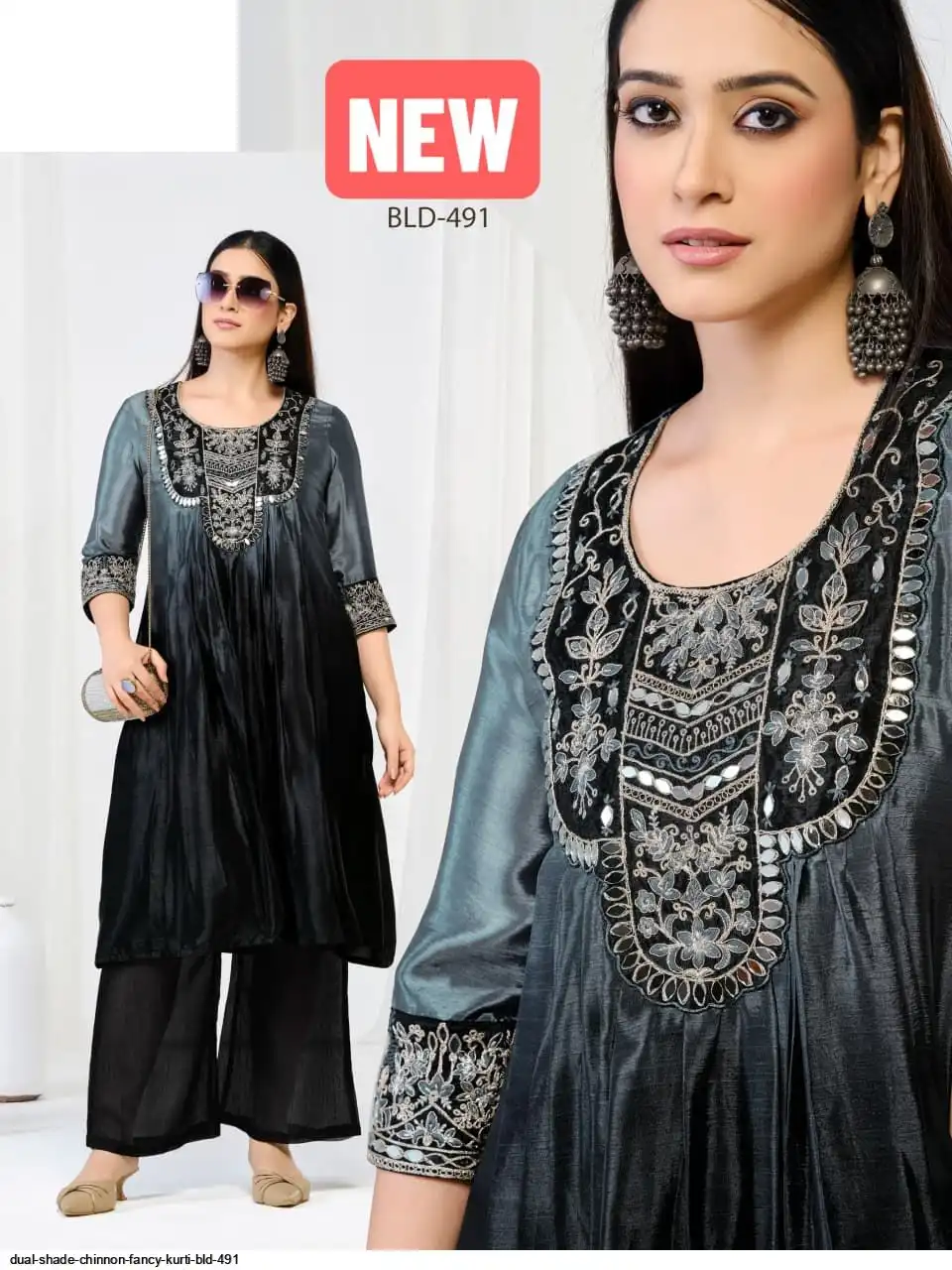 DUAL SHADE CHINNON FANCY KURTI BLD 491