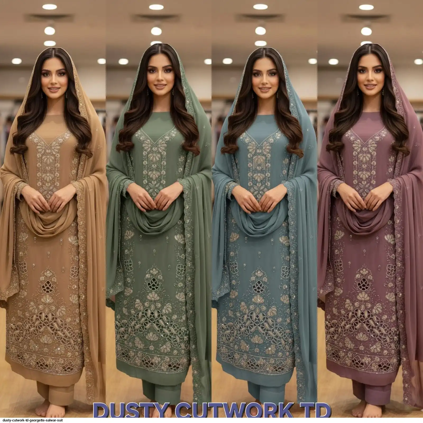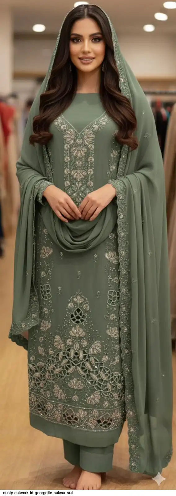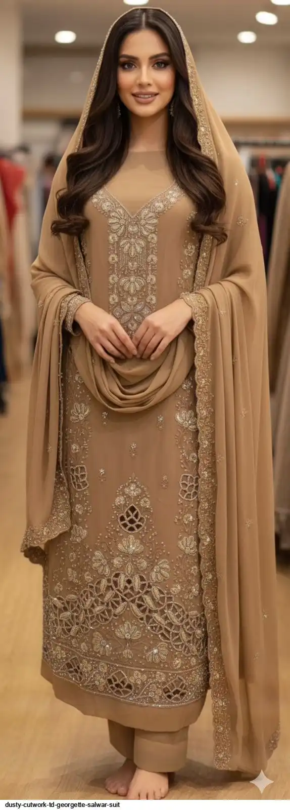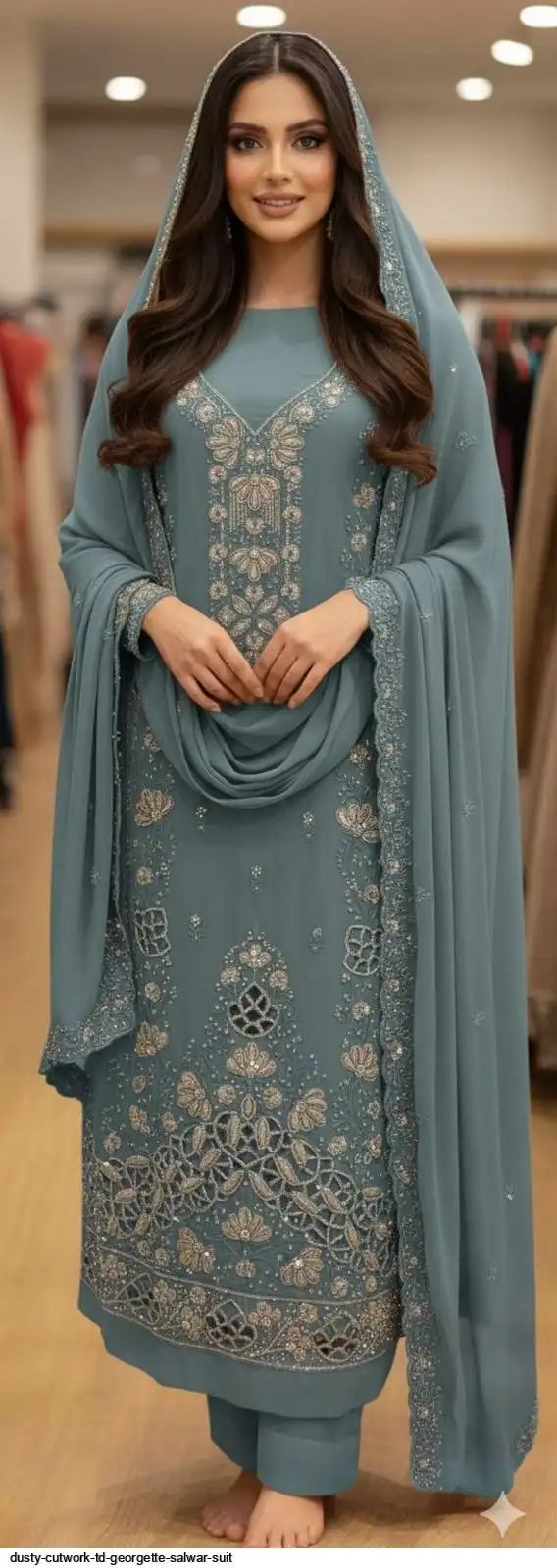 Top :- GEORGETTE WITH DELICATE 🪡 EMBROIDERY, ZARKHAN DIAMONDS, & FULL CUTWORK