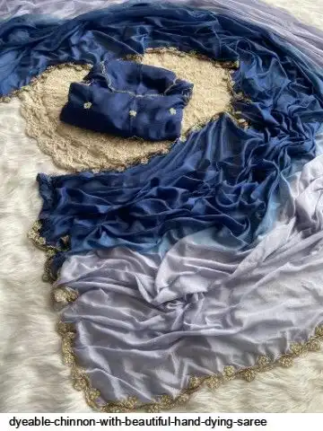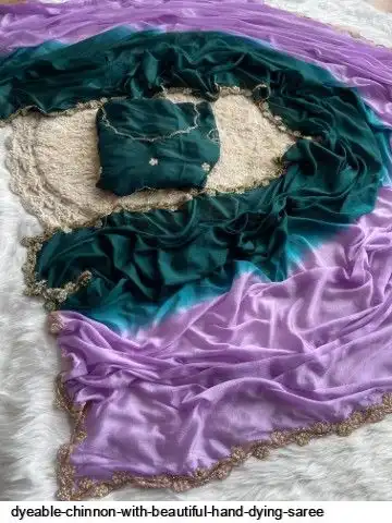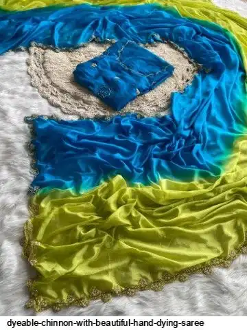 Dyeable chinnon saree with beautiful hand-dying all over touch up of handwork and matching silk blouse