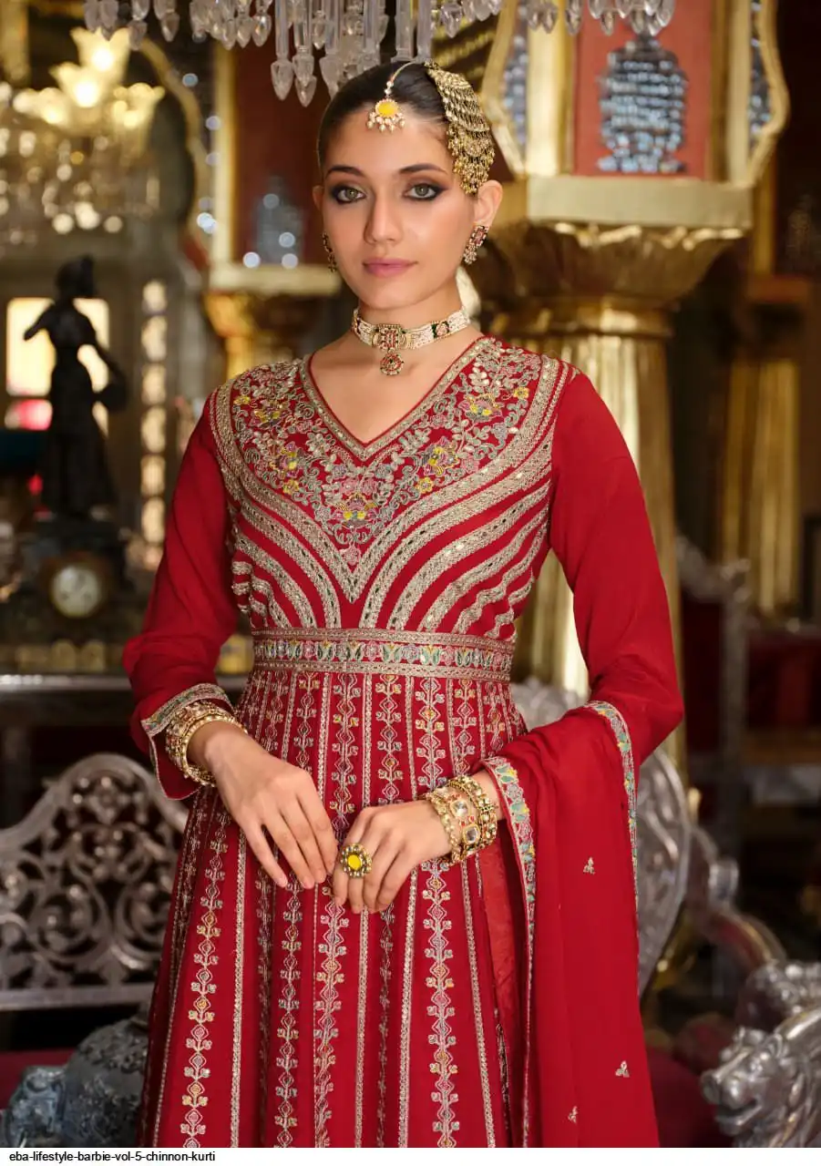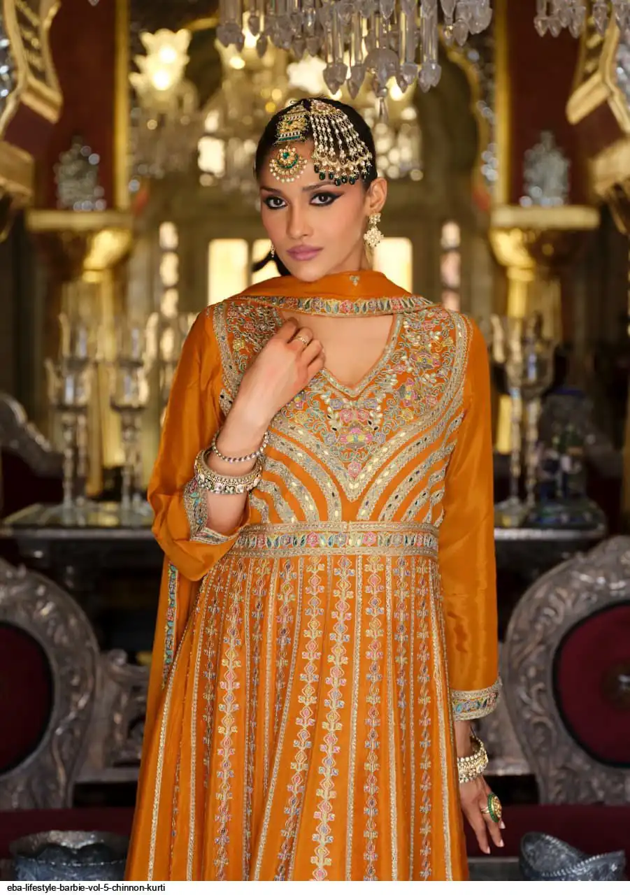 • Top : Heavy Chinnon with Exquisite Embroidery Work