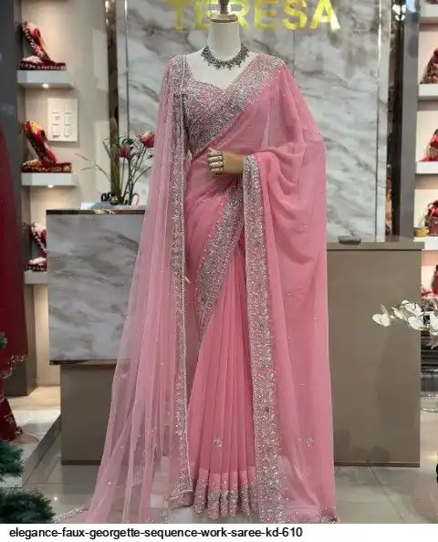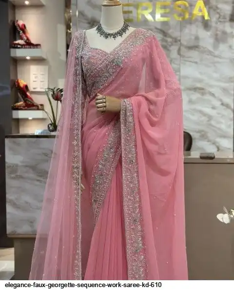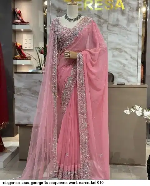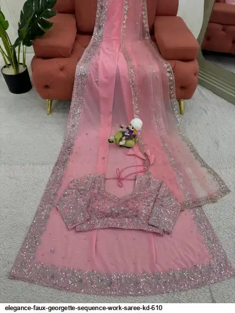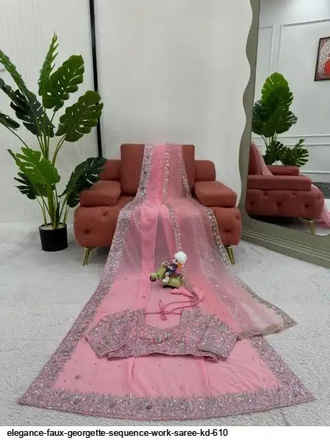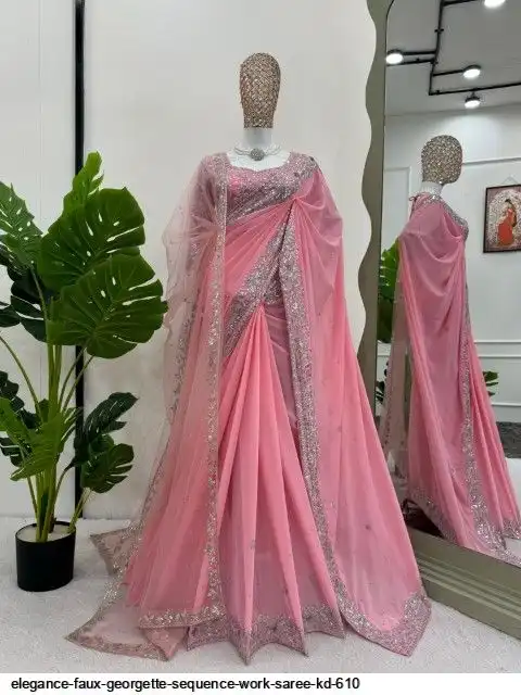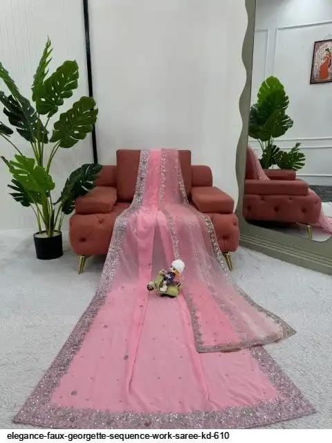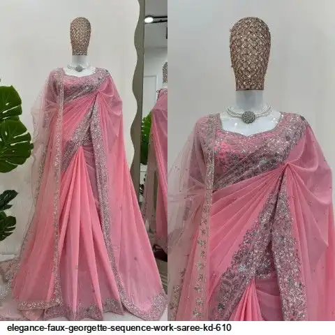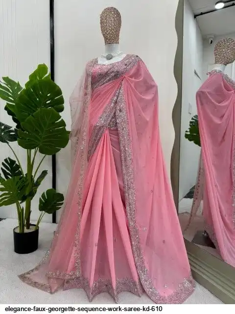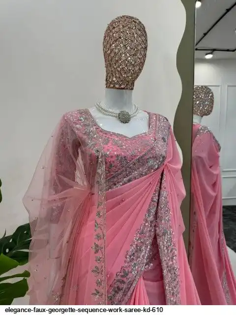 Fall in love with this stunning saree in an eye-catching shade, crafted with finesse and rich detailing. A perfect blend of grace and glam!