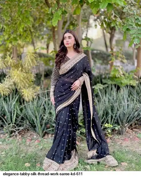 Fall in love with this stunning saree in an eye-catching shade, crafted with finesse and rich detailing. A perfect blend of grace and glam!