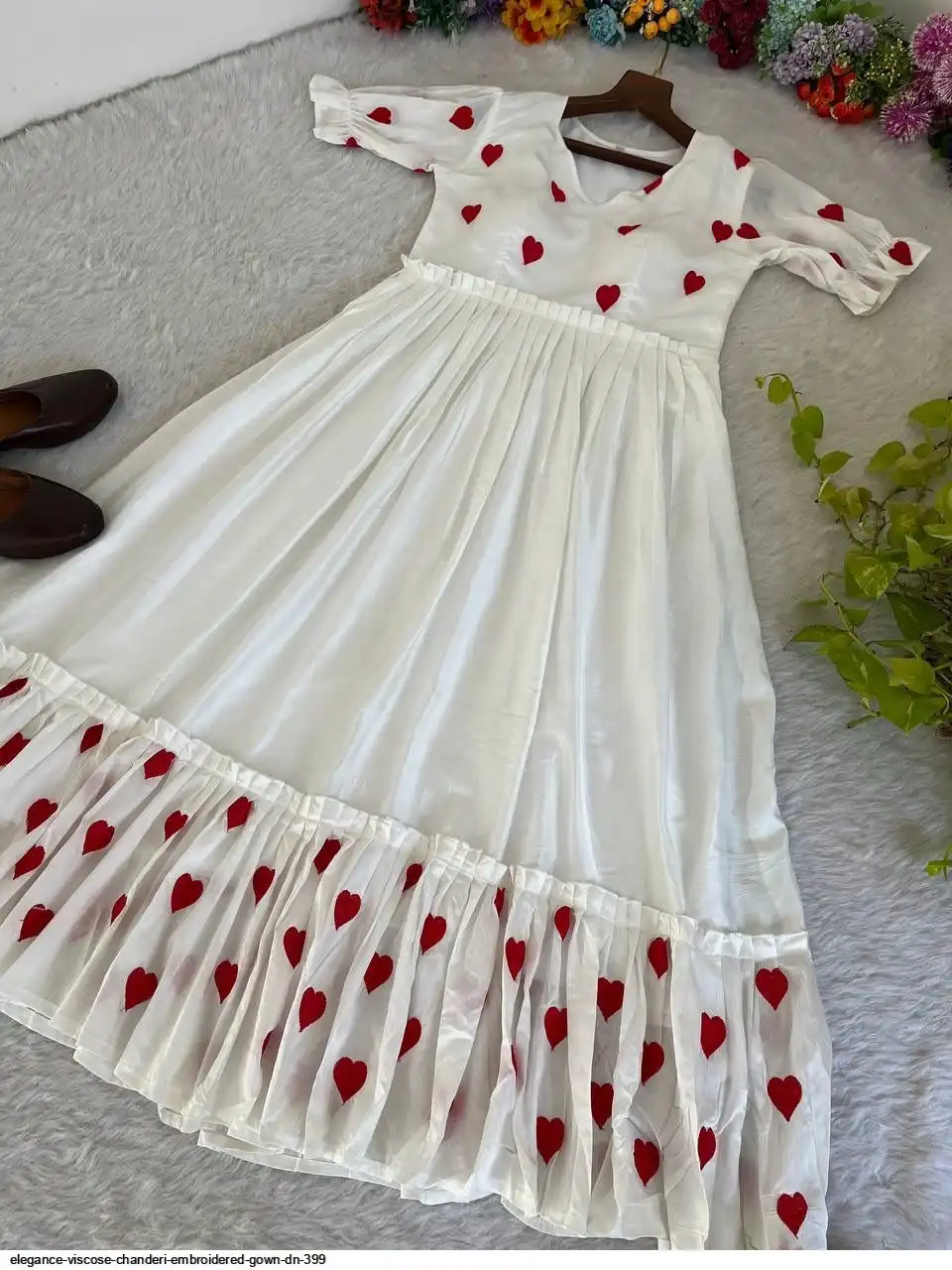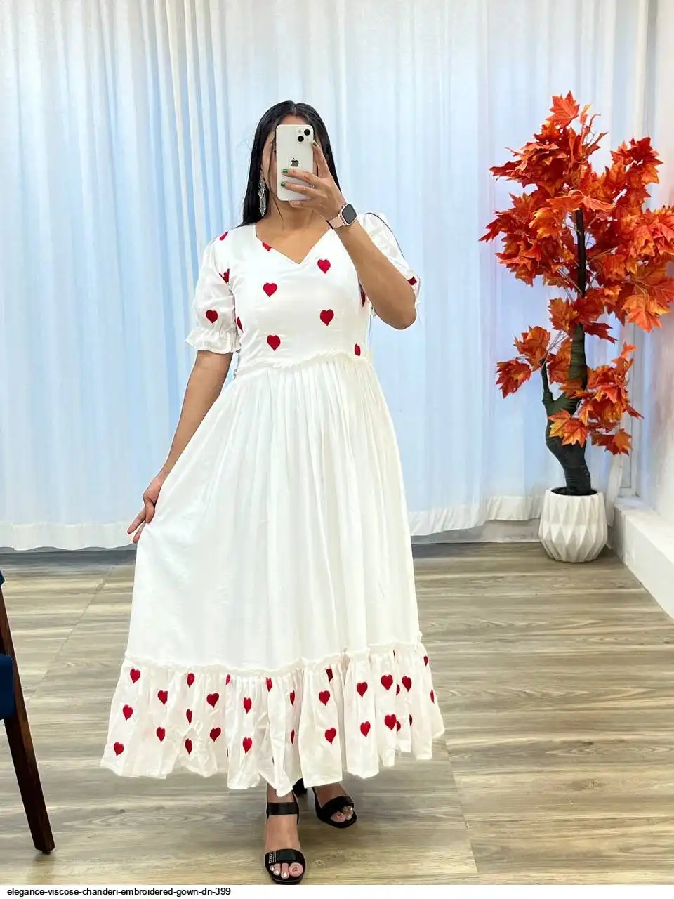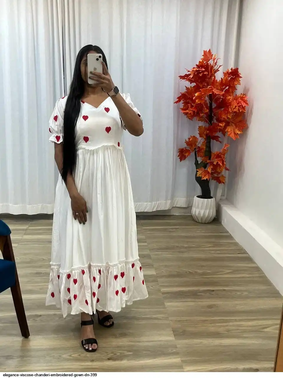 Experience the essence of purity with our breathtaking milk white embroidered gown set, perfect for winter festivities like Christmas!