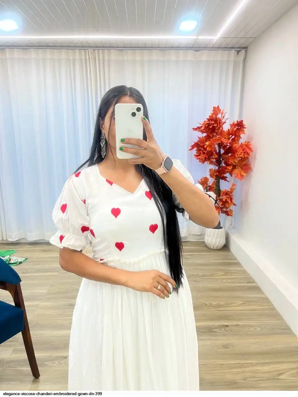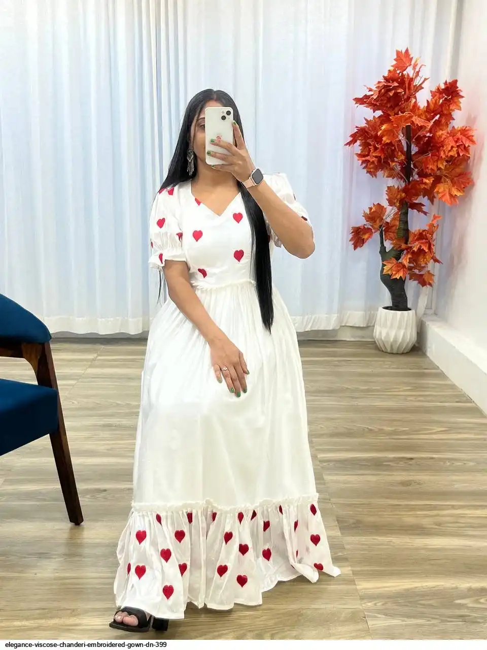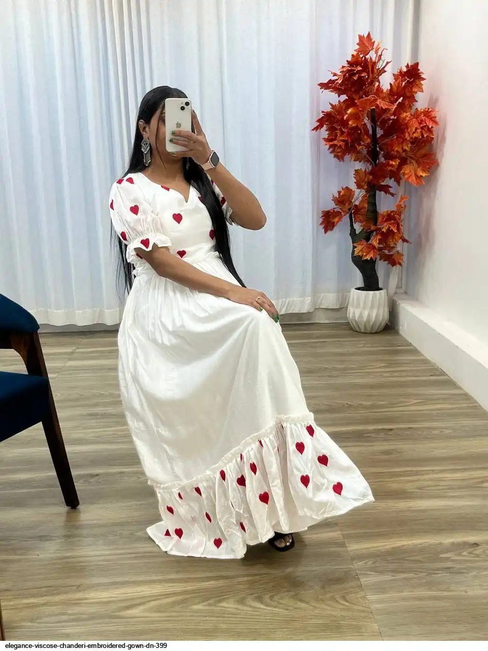 Experience the essence of purity with our breathtaking milk white embroidered gown set, perfect for winter festivities like Christmas!