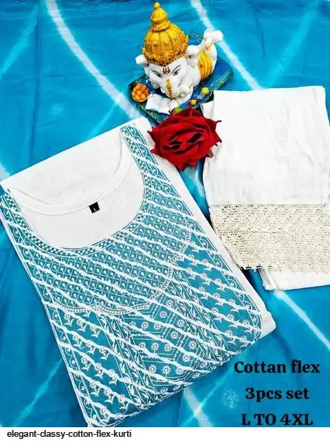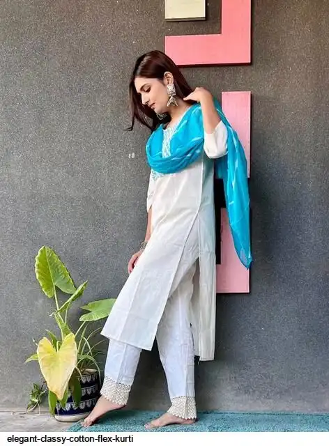 Classy Cotton Flex Off-White Kurta With Embroidered Yoke Paired With cotton Pant with lace in border and leheriya duppata