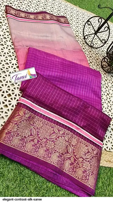 Contrast 2 sides zari weaving borders wt all-over zari checks
