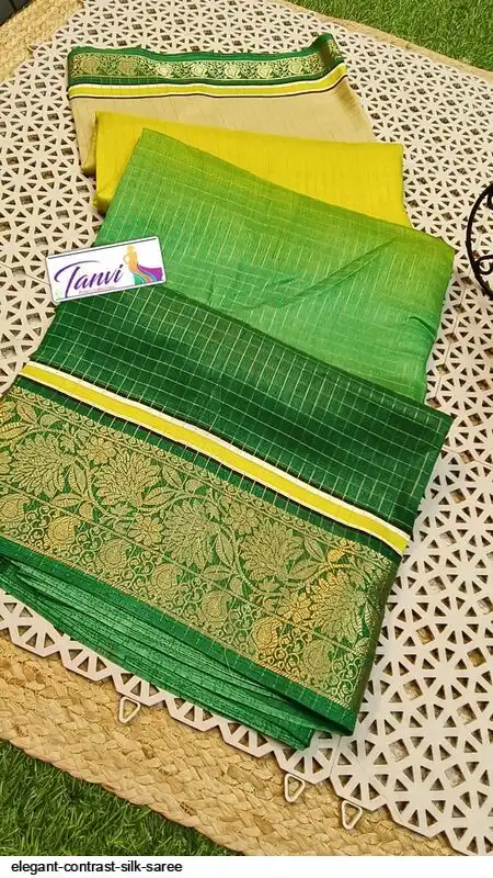 Contrast 2 sides zari weaving borders wt all-over zari checks