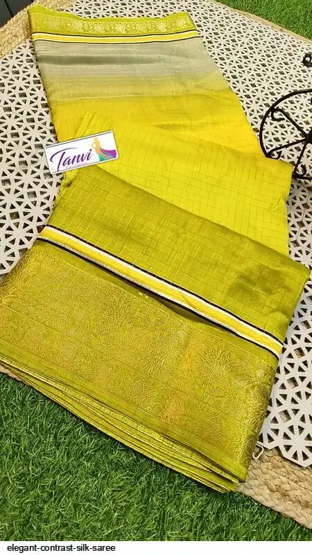 Contrast 2 sides zari weaving borders wt all-over zari checks
