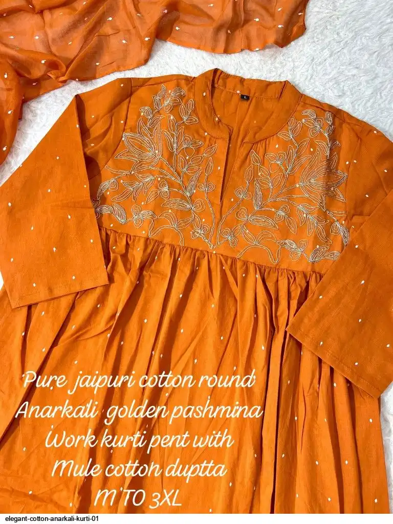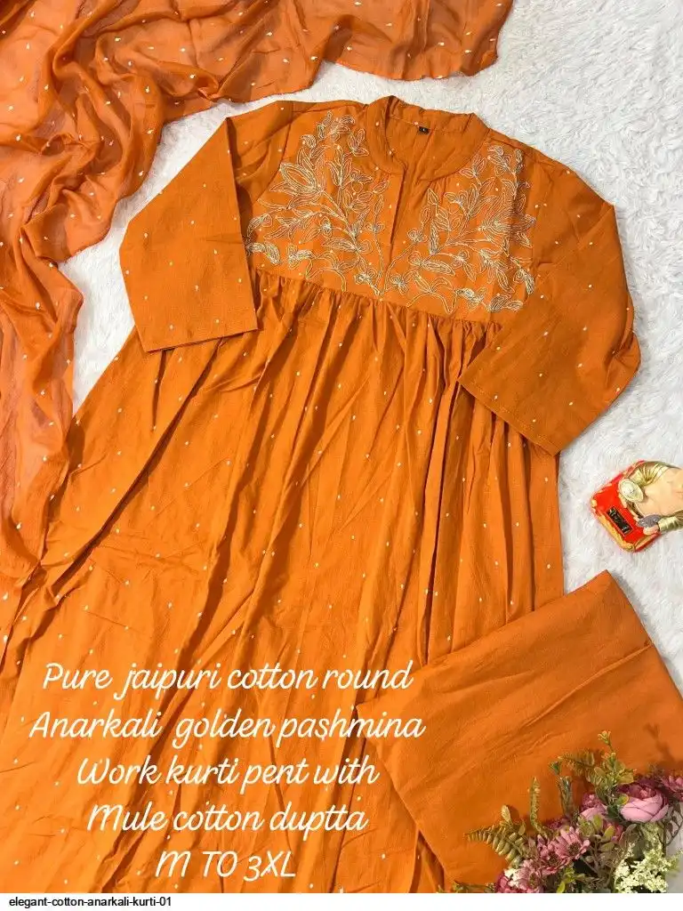 New anarkali kurta set with Cotton Pant & Malmal Dupatta with tier pattern