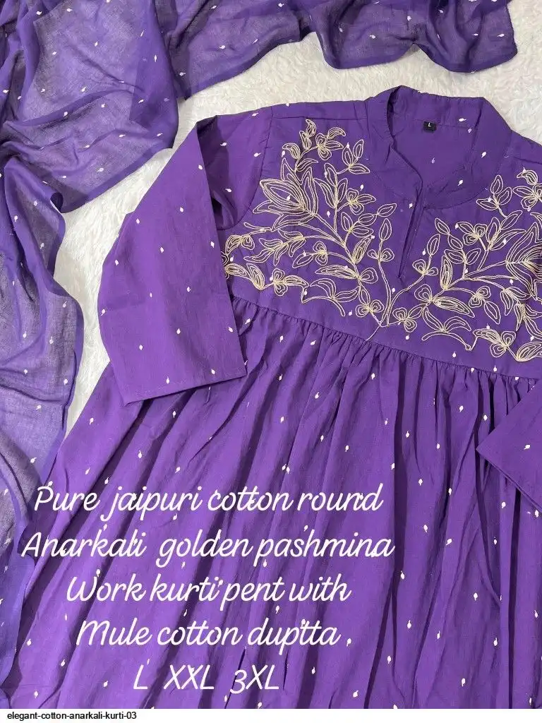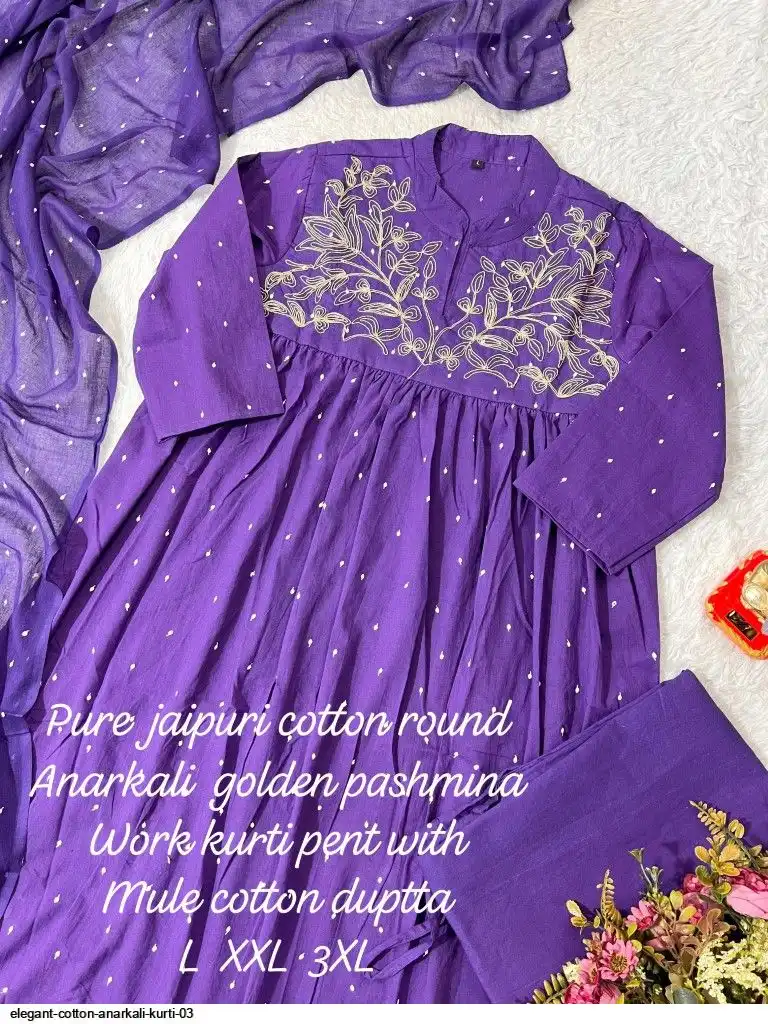 New anarkali kurta set with Cotton Pant & Malmal Dupatta with tier pattern