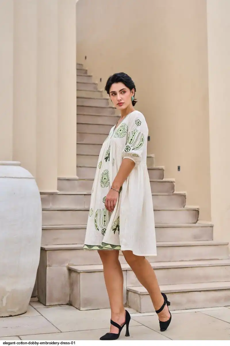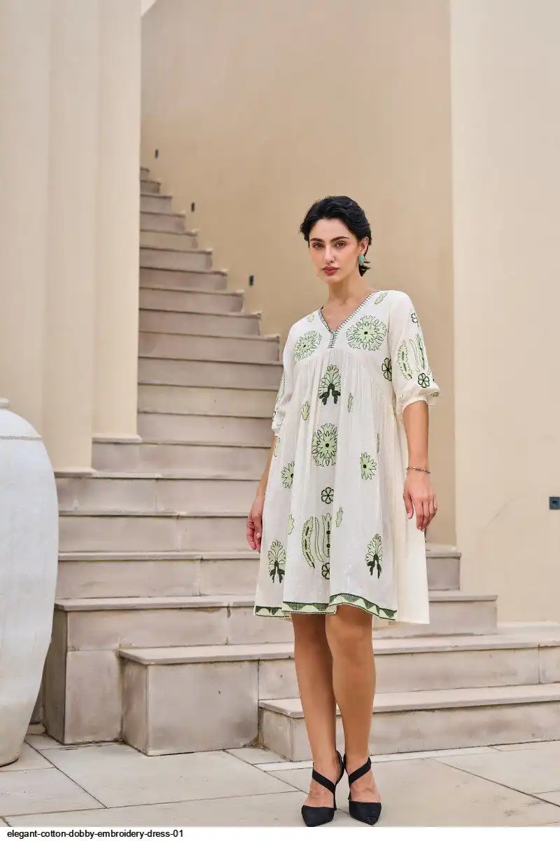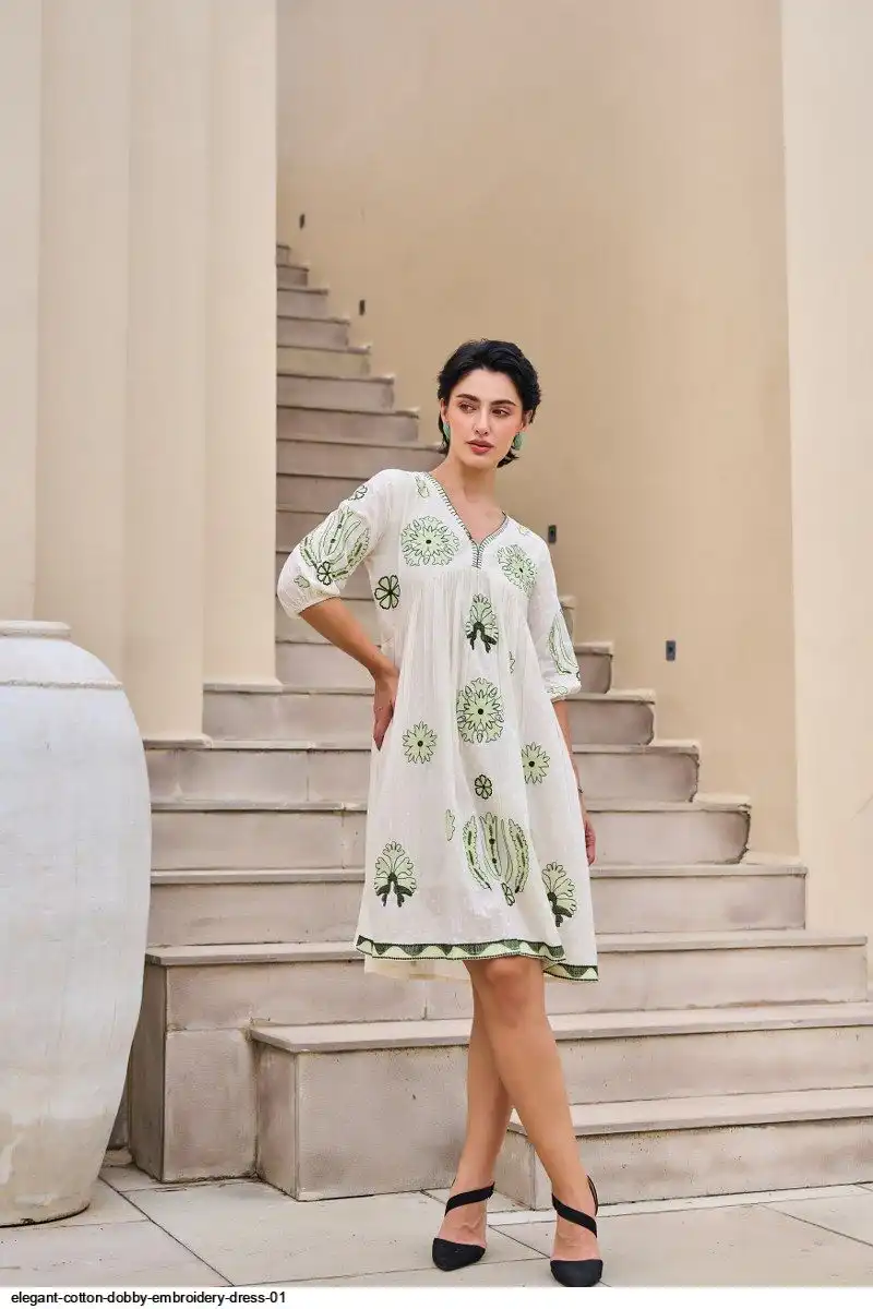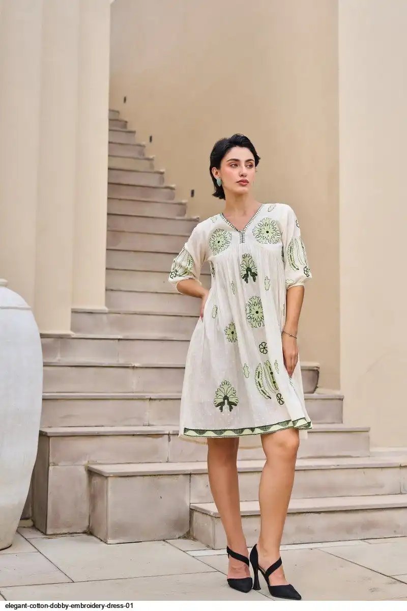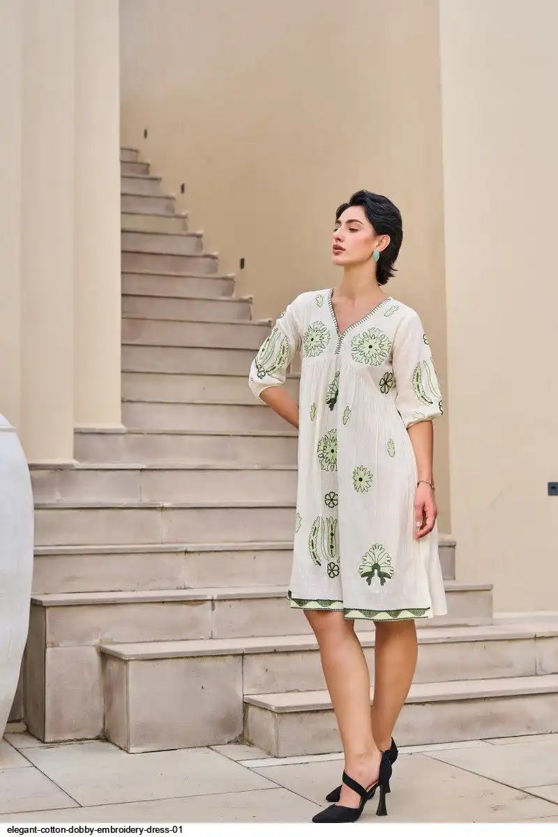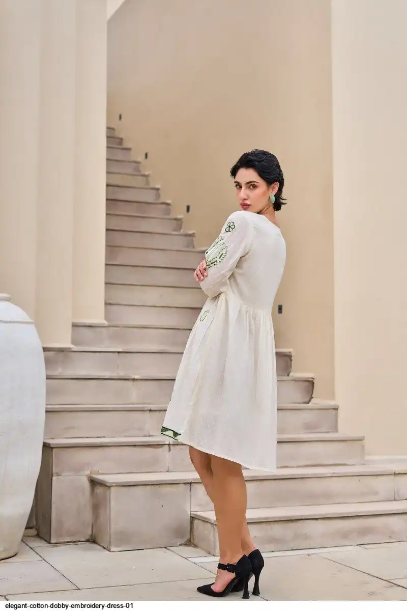 ELEGANT COTTON DOBBY EMBROIDERY DRESS 01