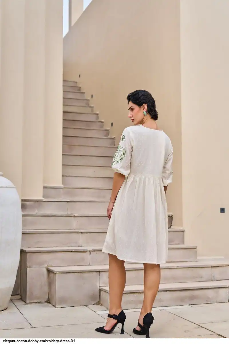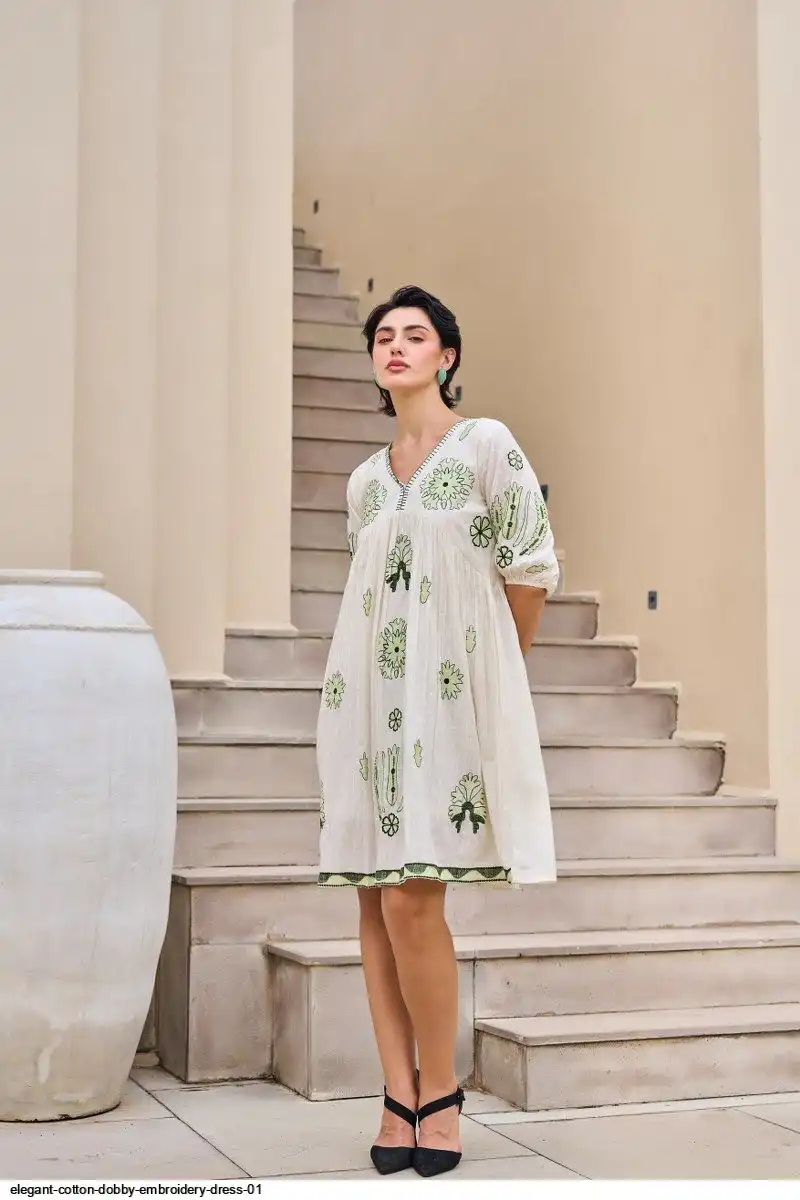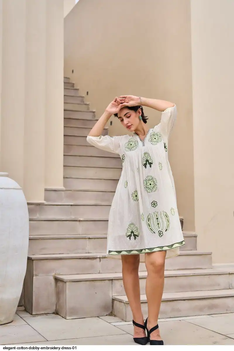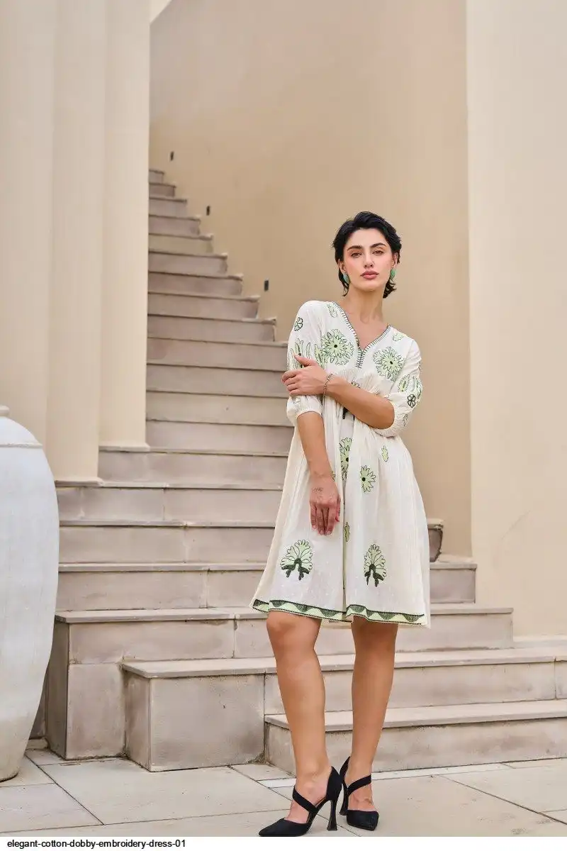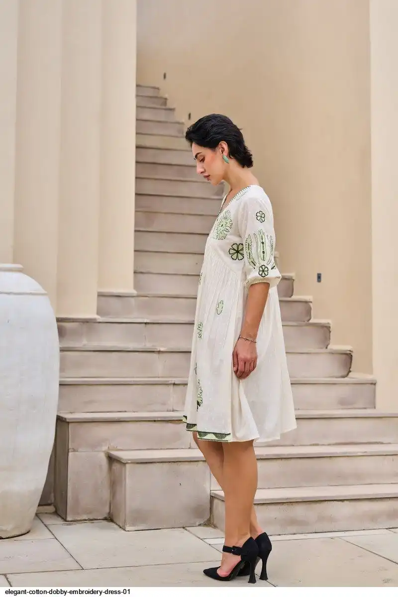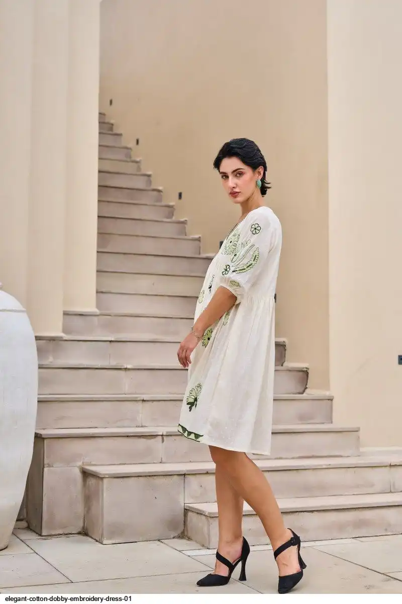 ELEGANT COTTON DOBBY EMBROIDERY DRESS 01