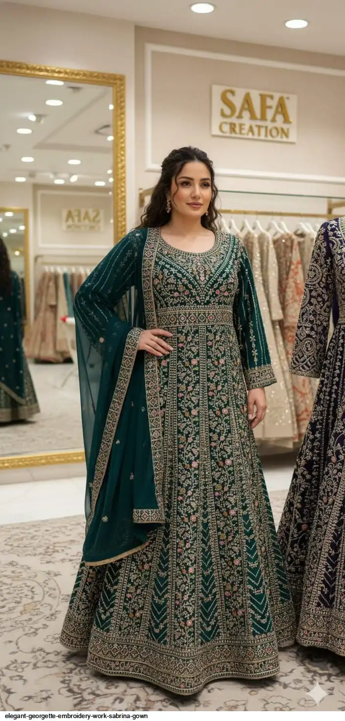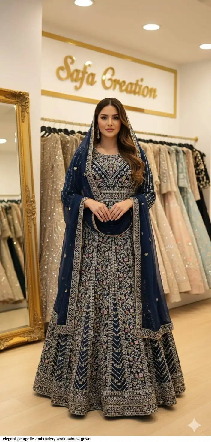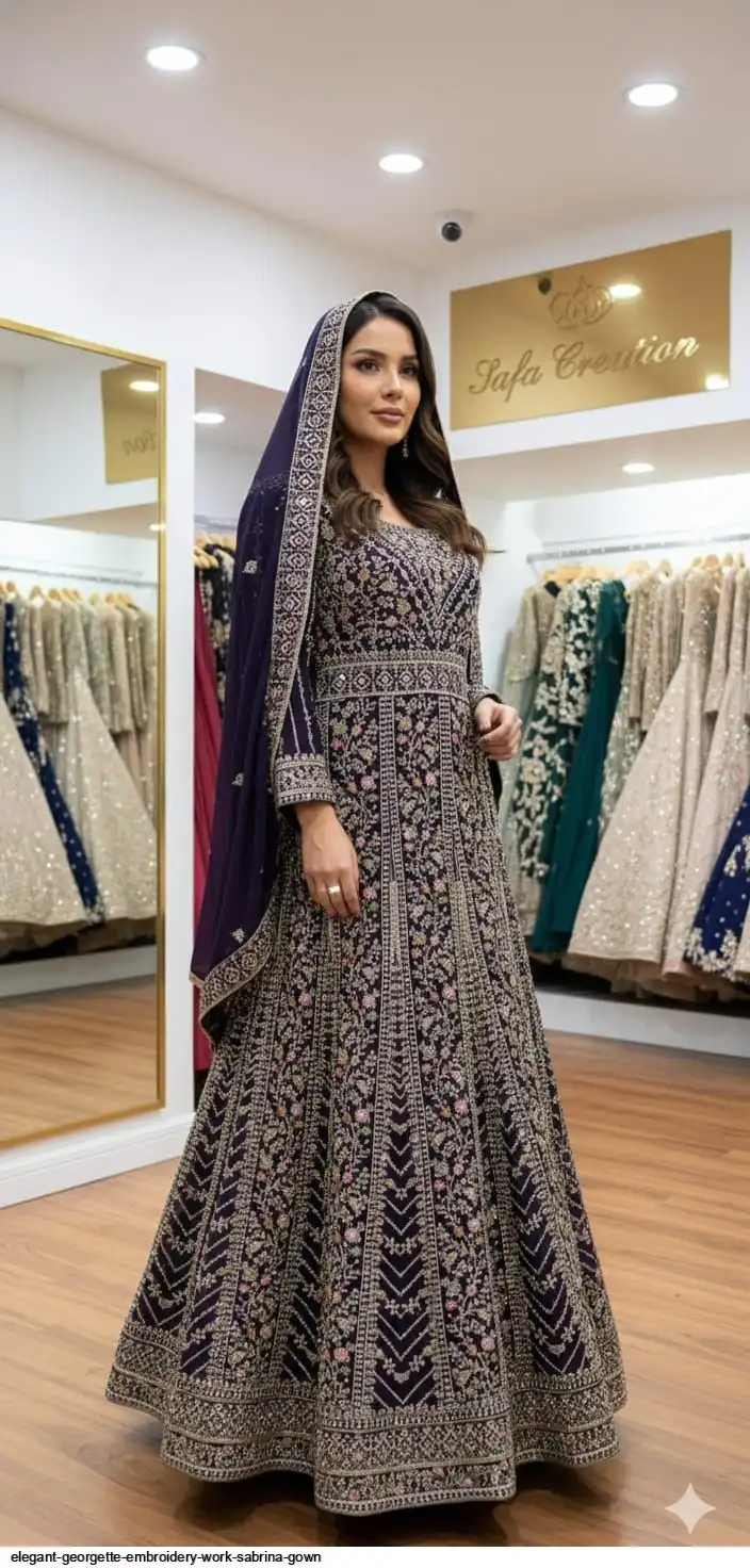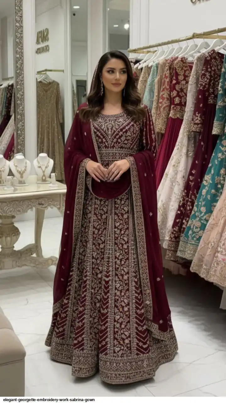 Top :- PREMIUM Georgette With EXQUISITE EMBROIDERY Full of Zarkhan Diamonds & FULL GHERA WITH DESIGNER FINISHING
