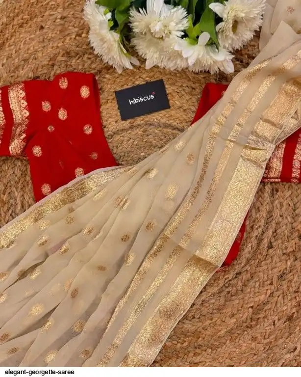 Viscose Georgette Saree With Contrast viscose georgette blouse