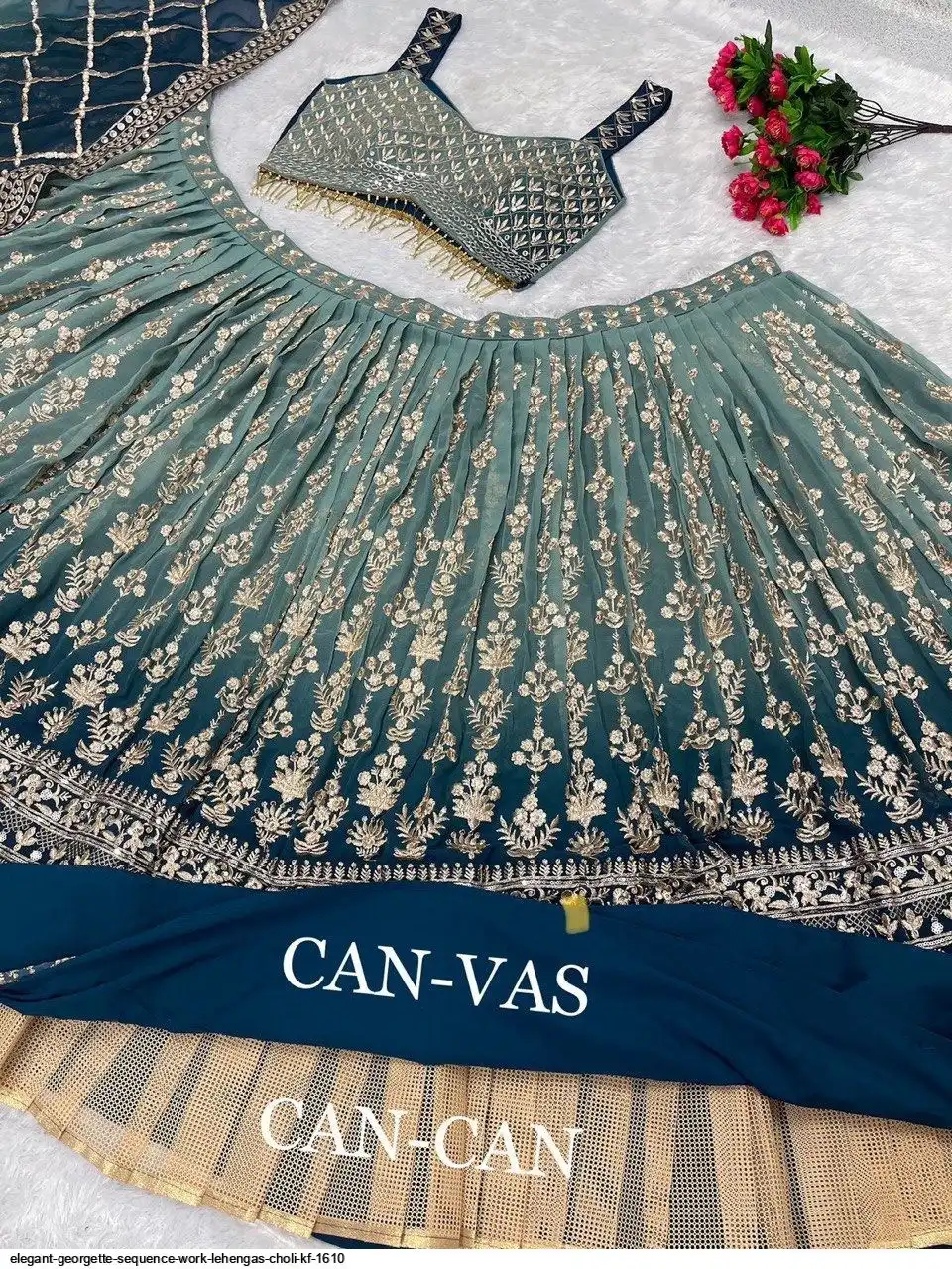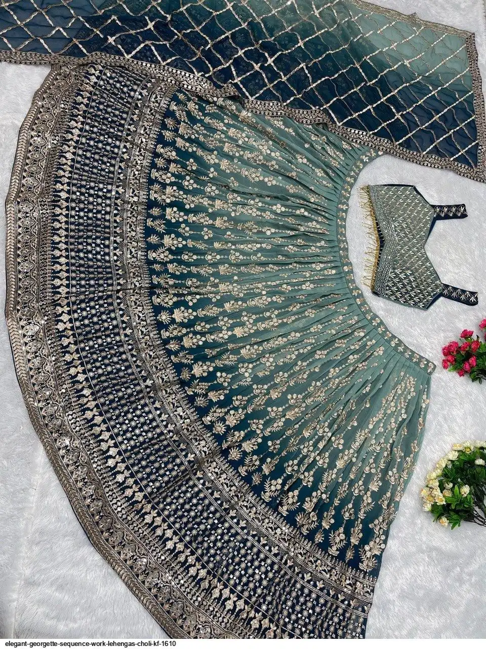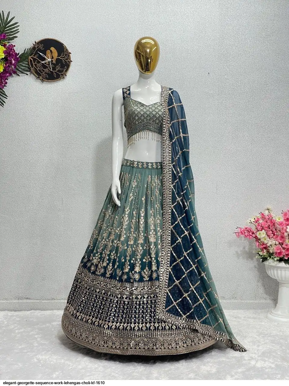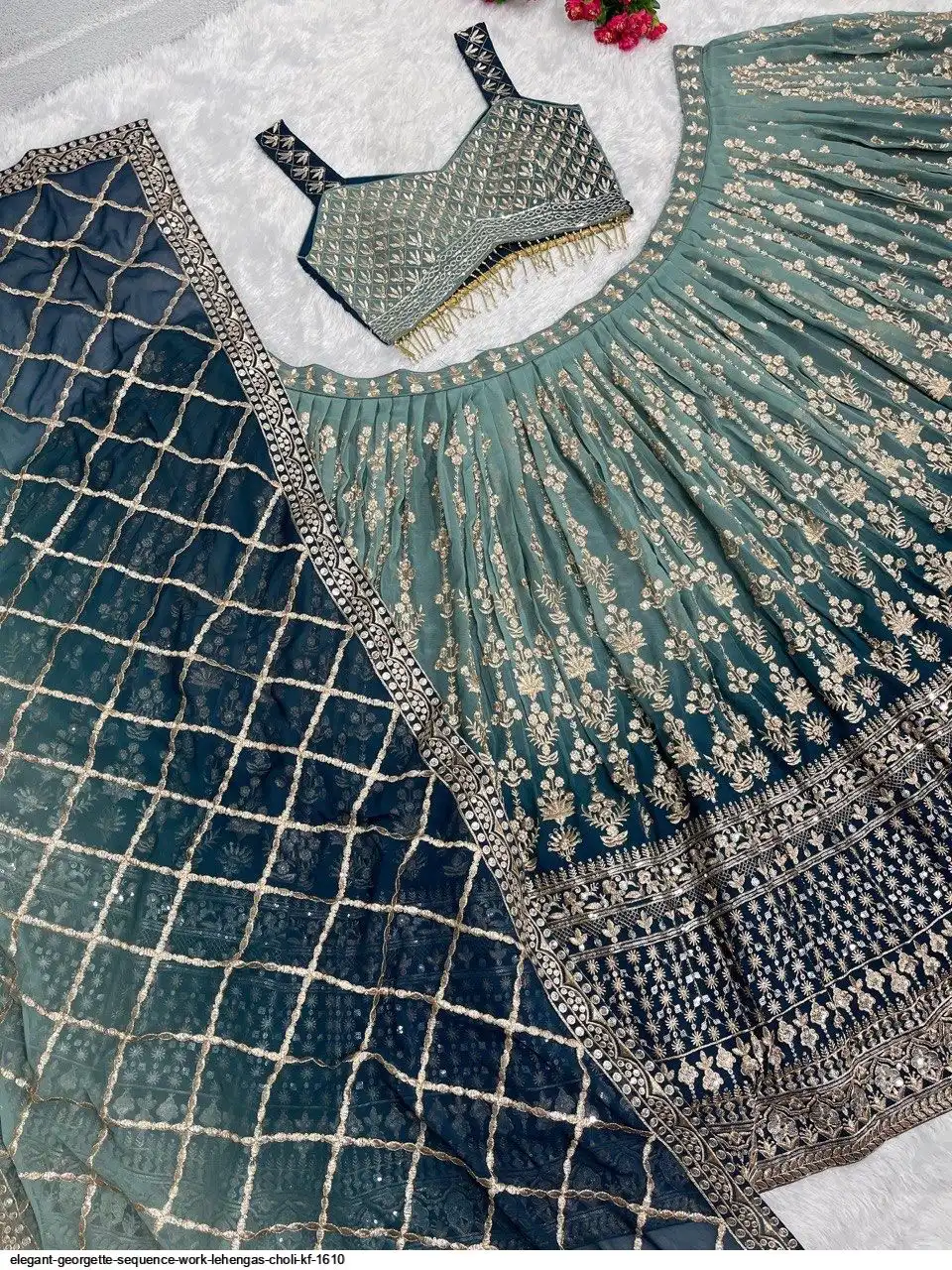 BRIDAL WEAR HEAVY FUAX GEORGETTE EMBROIDERED SEQUENCE WORK LEHENGAS CHOLI WITH DUPATTA