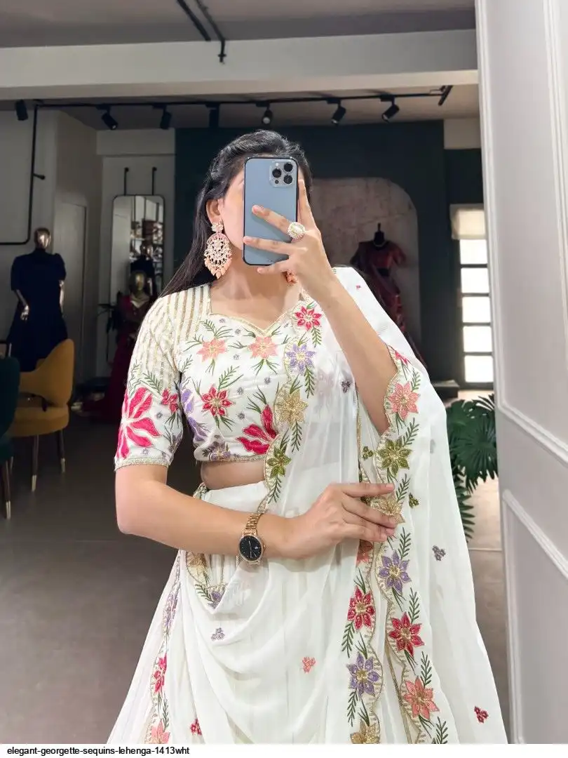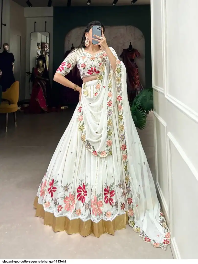Lehenga work : Sequins and Thread Embroidery Work With Embossed Design Lace