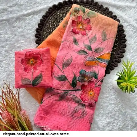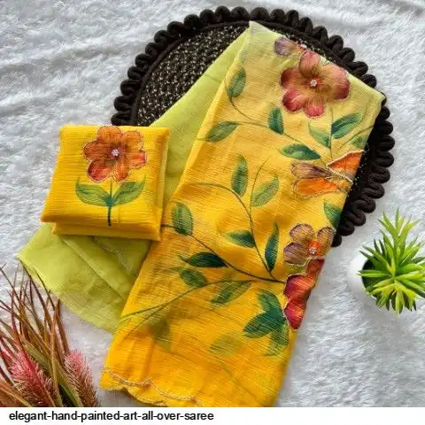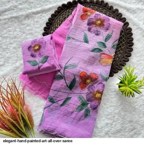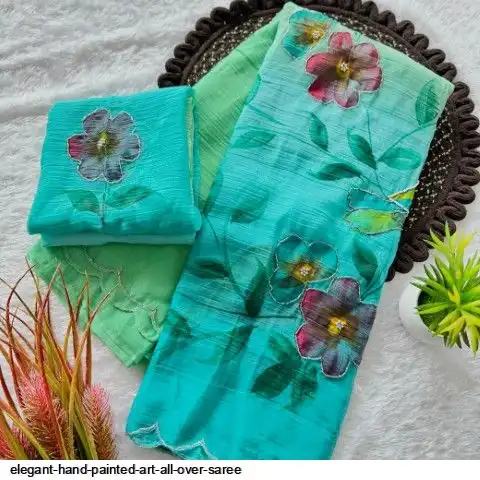 Elegant hand-painted art all over with delicate handwork detailing. Comes with matching running blouse with work.
