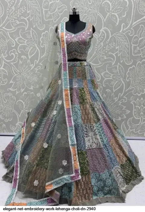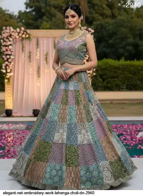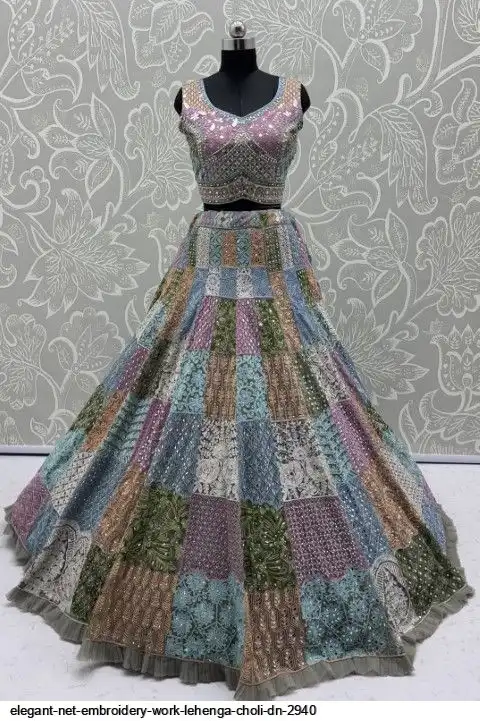 Full Flaired Chain Embroidery with Real Mirror work Designer Lehenga Choli