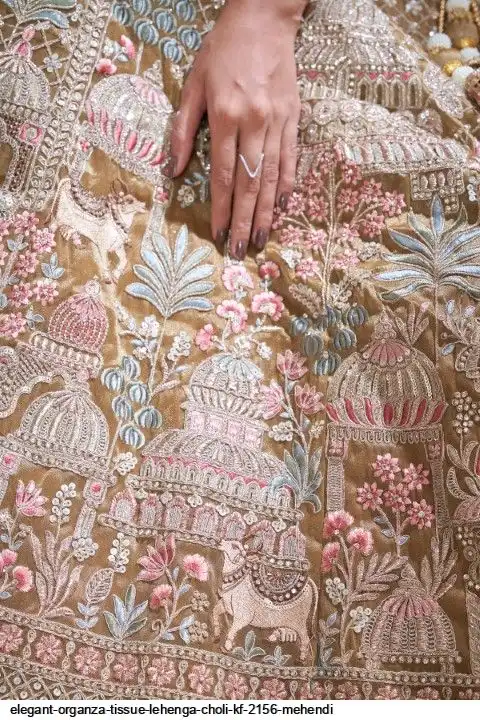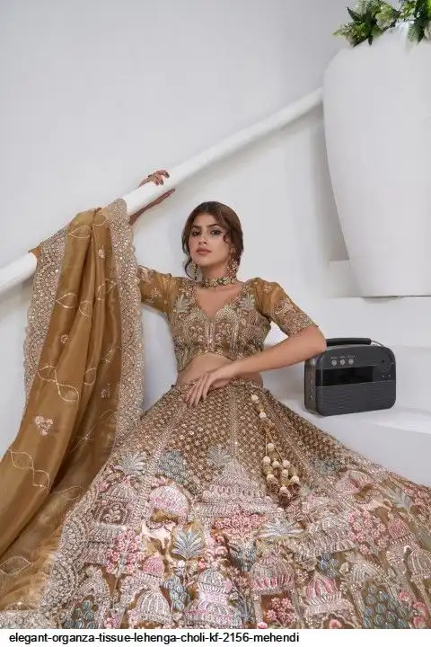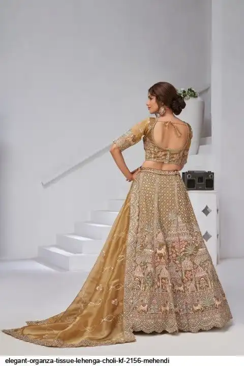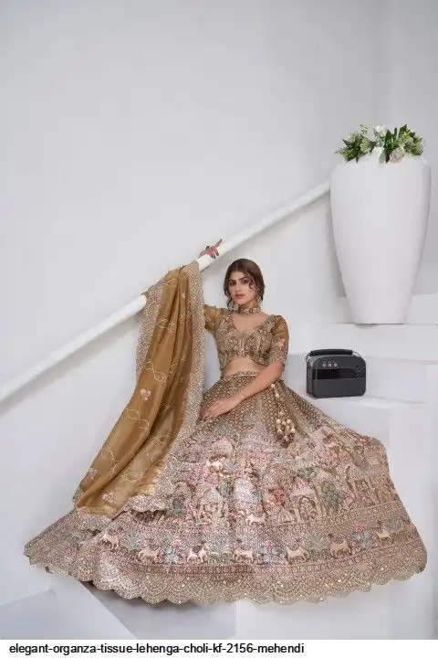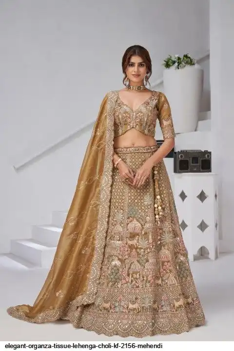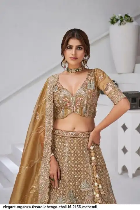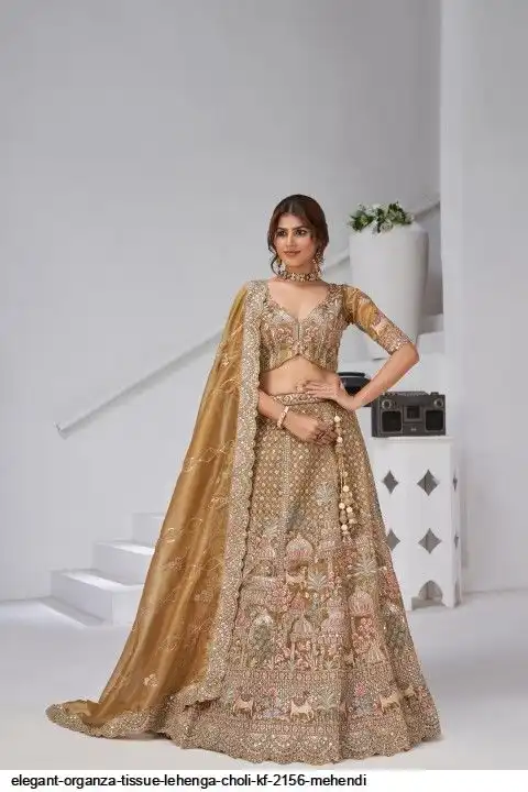 ELEGANT ORGANZA TISSUE LEHENGA CHOLI KF 2156 MEHENDI