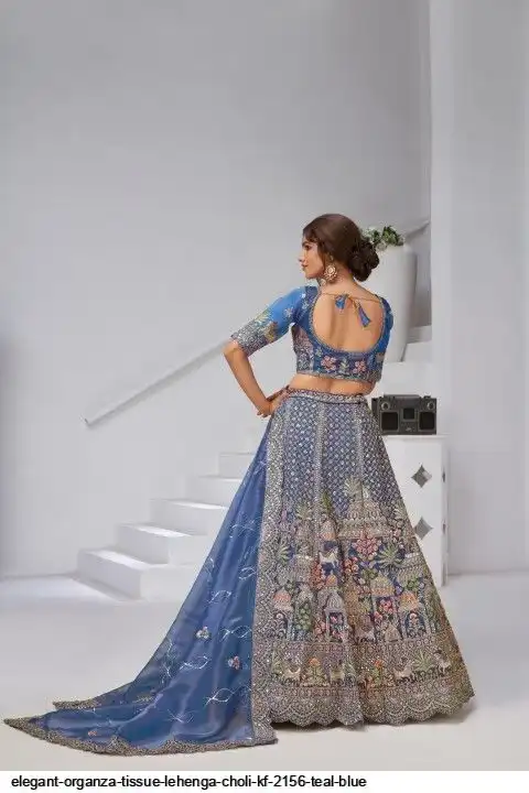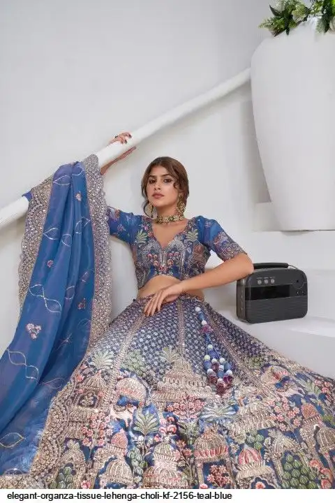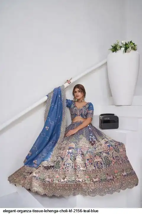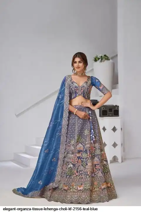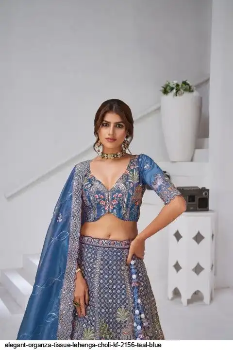 ELEGANT ORGANZA TISSUE LEHENGA CHOLI KF 2156 TEAL BLUE