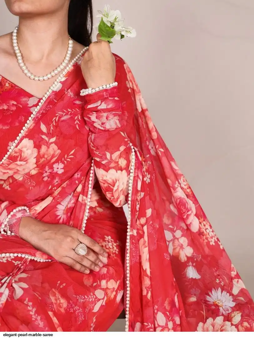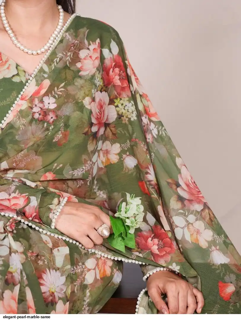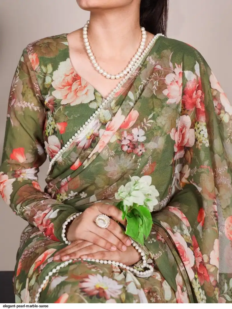 Saree work : Printed With Pearl Lace Border