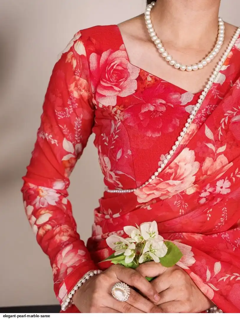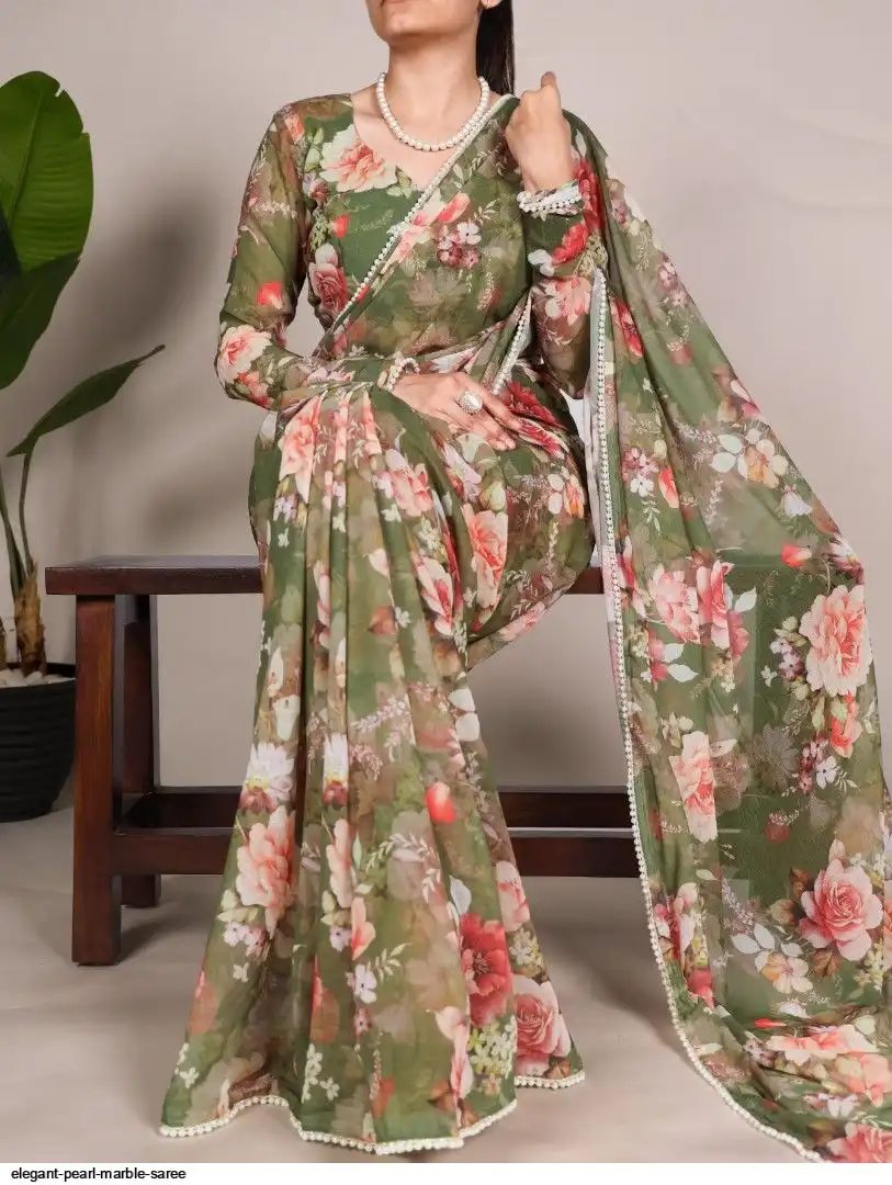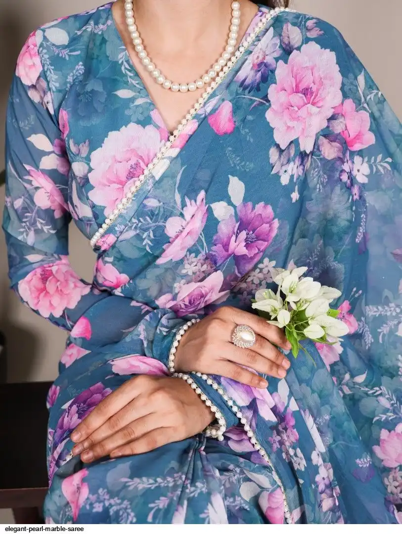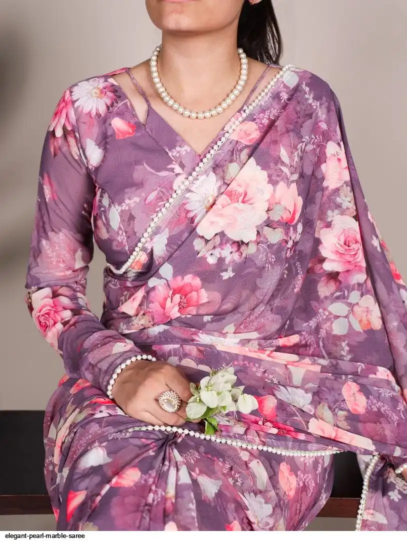 Saree work : Printed With Pearl Lace Border