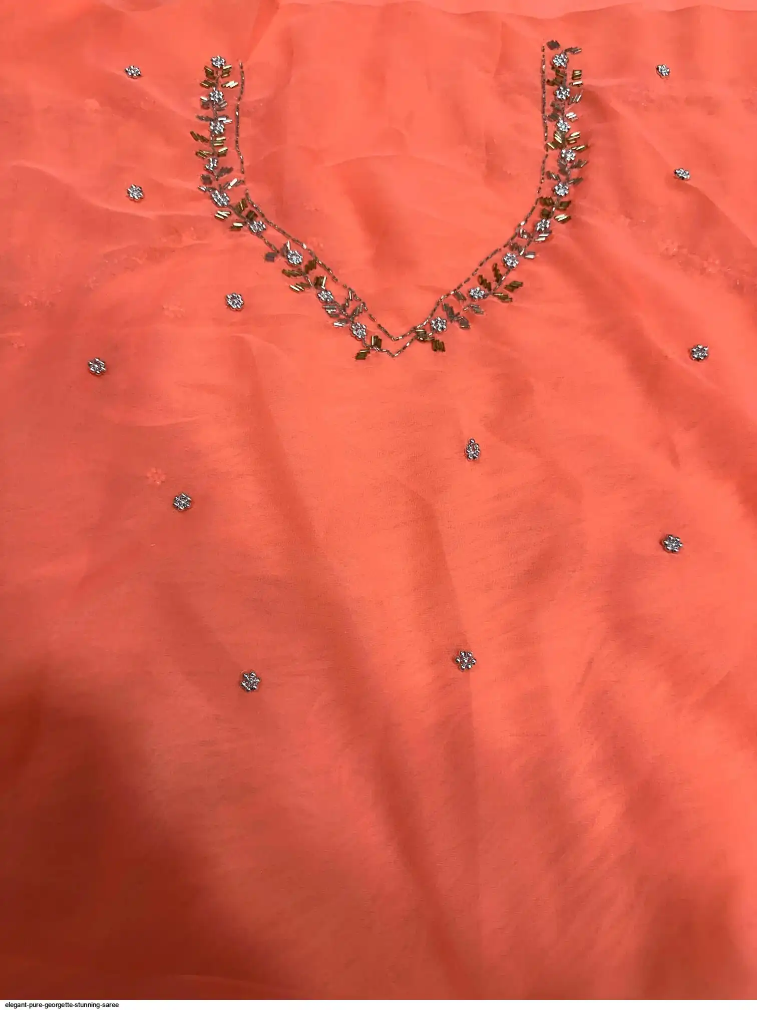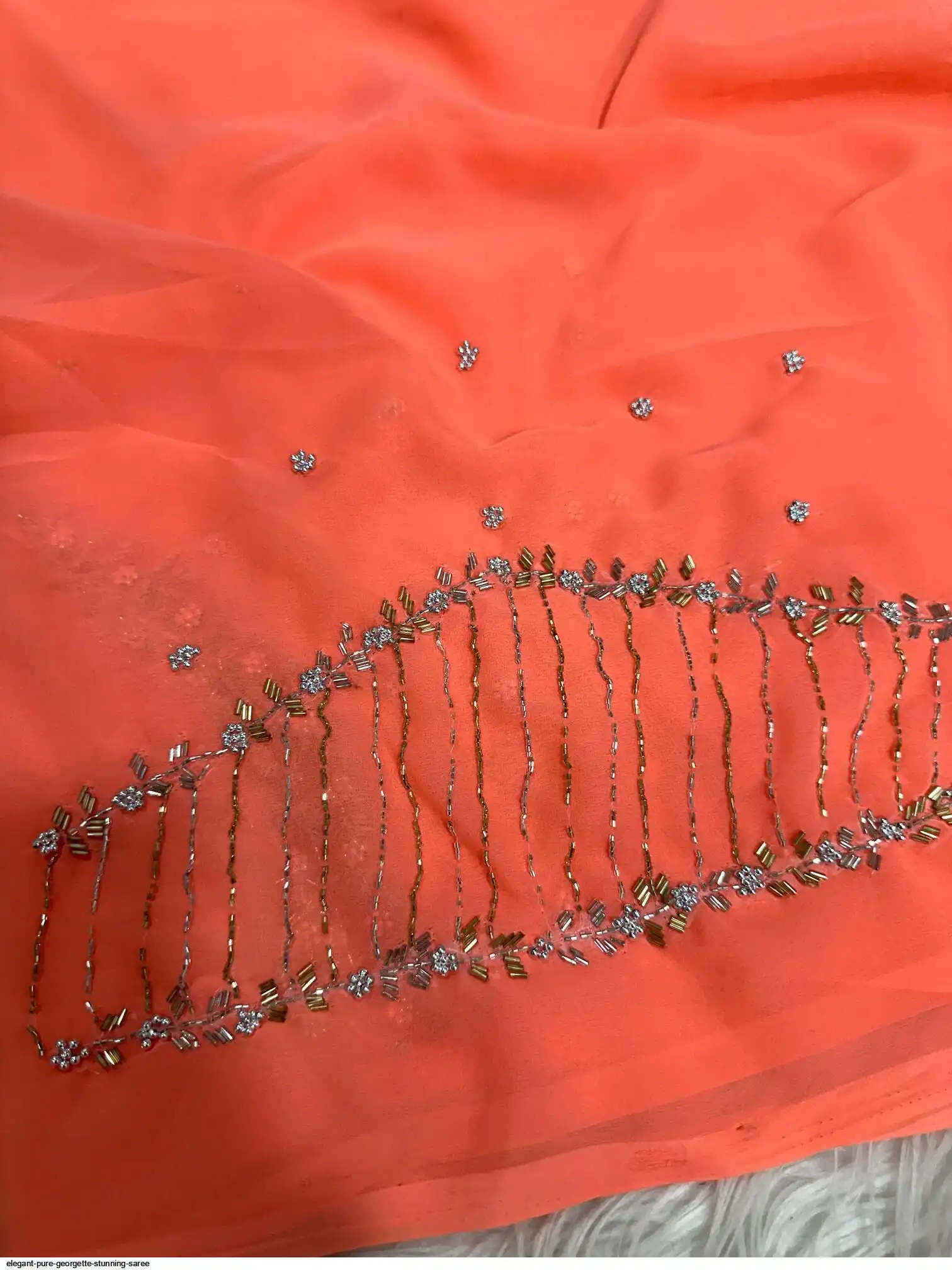 The most favourite pure red Georgette saree Three Layer 3 Cutdana* Border And Double Layer Arco hand work Border Having All Over Saree hand work havy hand wrok blouse