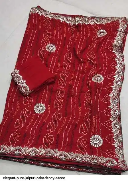 Pure 75*75 Jaipuri print jhorjt with running blouse Jaipuri traditional Bandej saree special saree Beautiful ladies big Beautiful