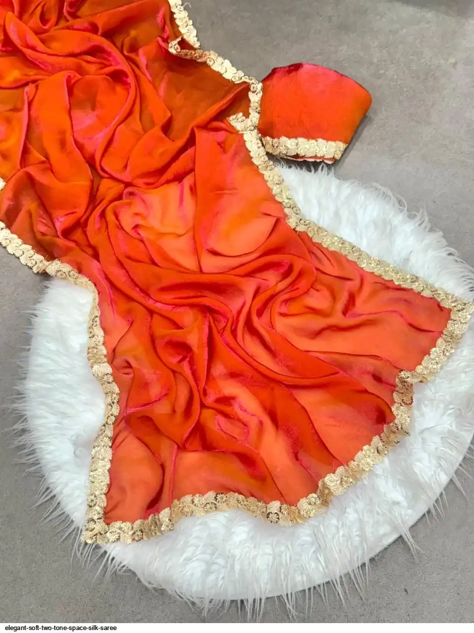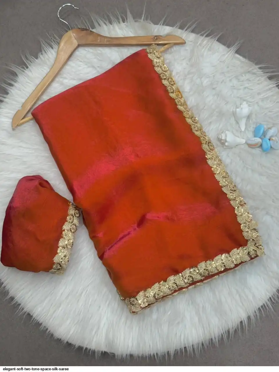 Fabric:-soft Two tone Space silk With Embroidery coding with Sequence Border In Saree This Elegant flower In Border Embroidered