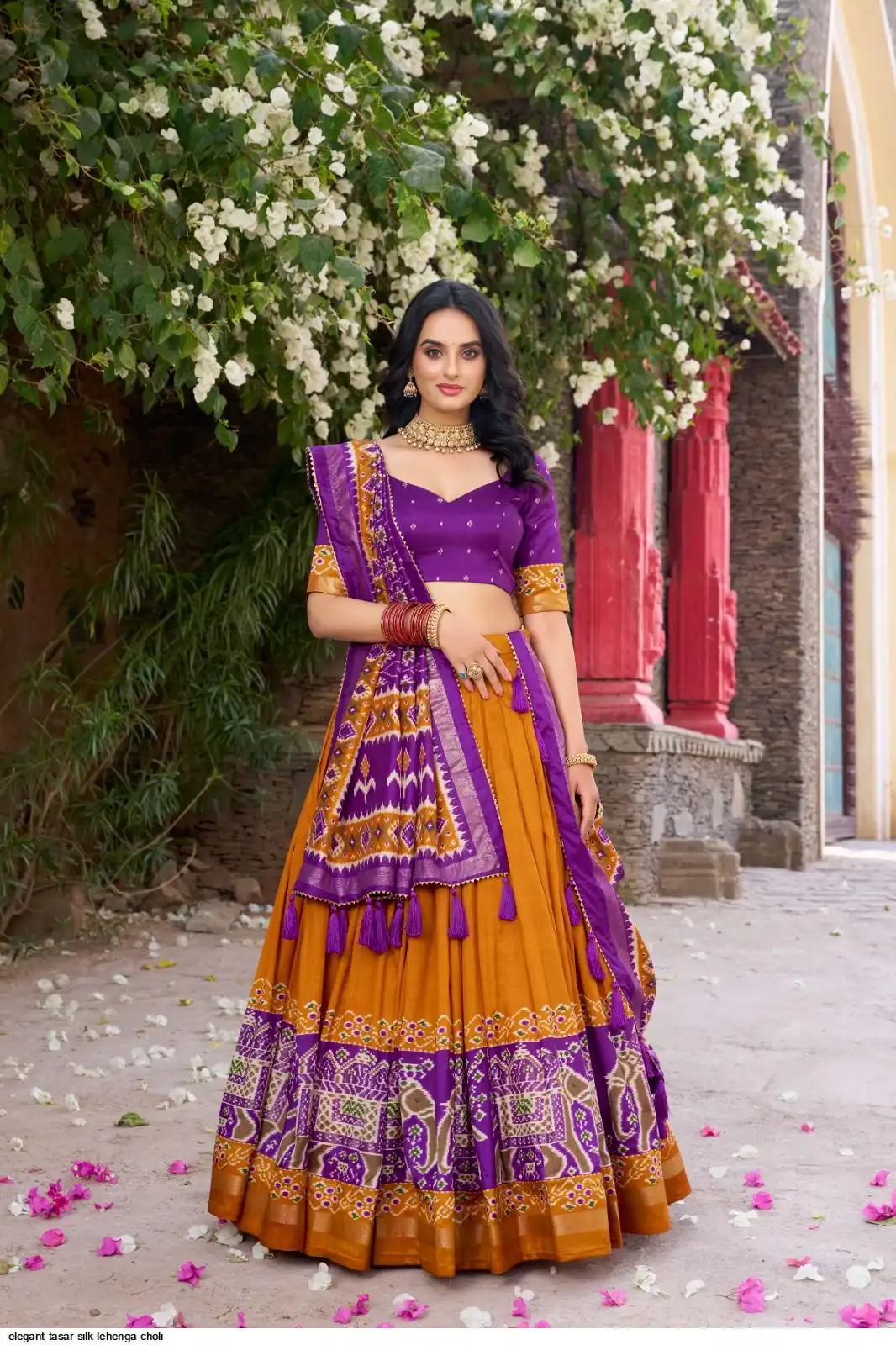 Dupatta work : Patola Print With Gotta Patti Lace Border also comes with tassels