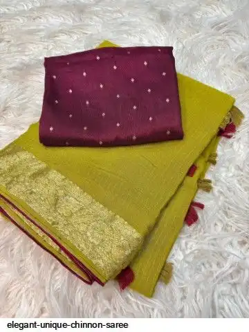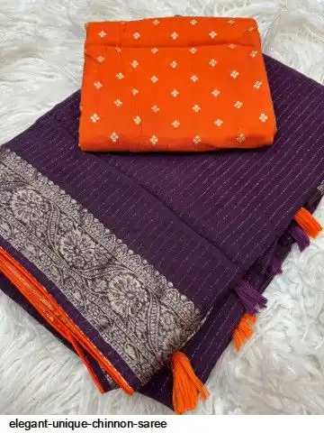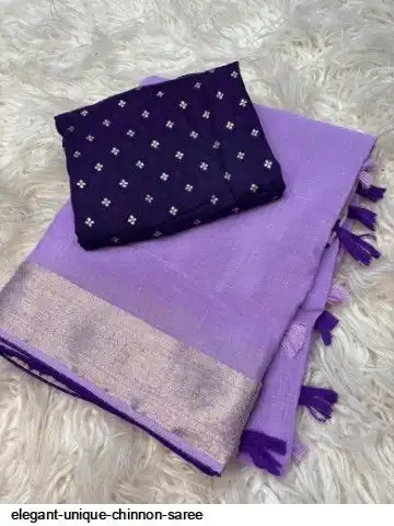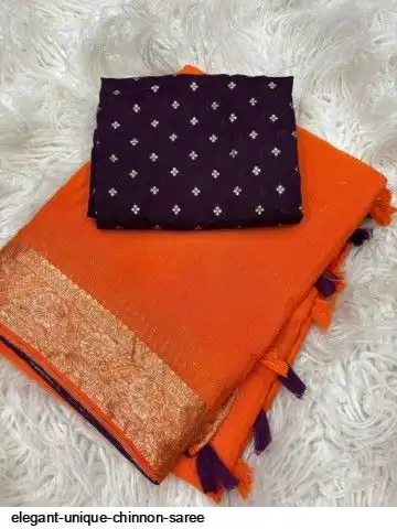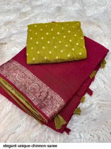 Pure viscose Chinnon saree with pipping finishing and jacquard border with contrast matching jacquard blouse